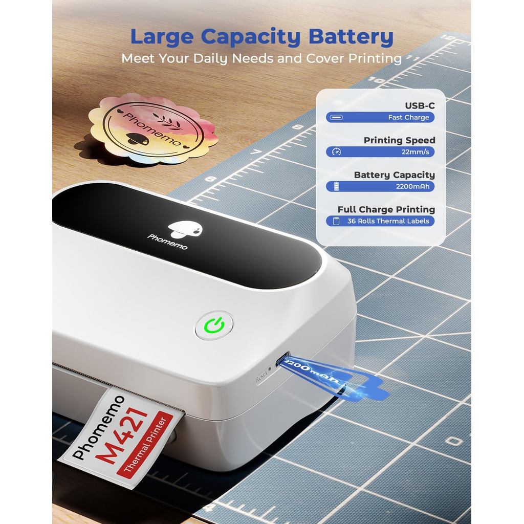 Phomemo M421 Label Printer Bluetooth 10X15CM Portable Shipping Label Printer Thermal Printers for stickers for Shipping, Warehouse, Barcode, Address,Compatible with Phone & PC
