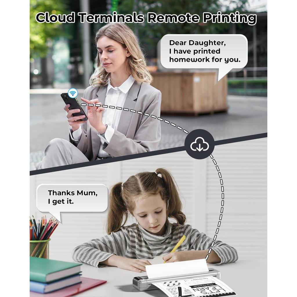Phomemo Q302 portable thermal WIFI printer wireless printer, A4 and B5 size, SUPPORT PHONE BLUETOOTH AND give phone charge for travel and printing study materials.