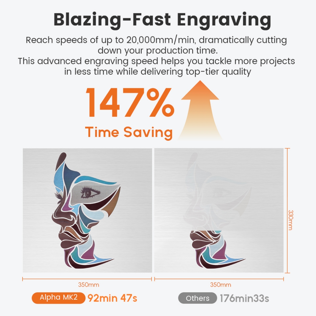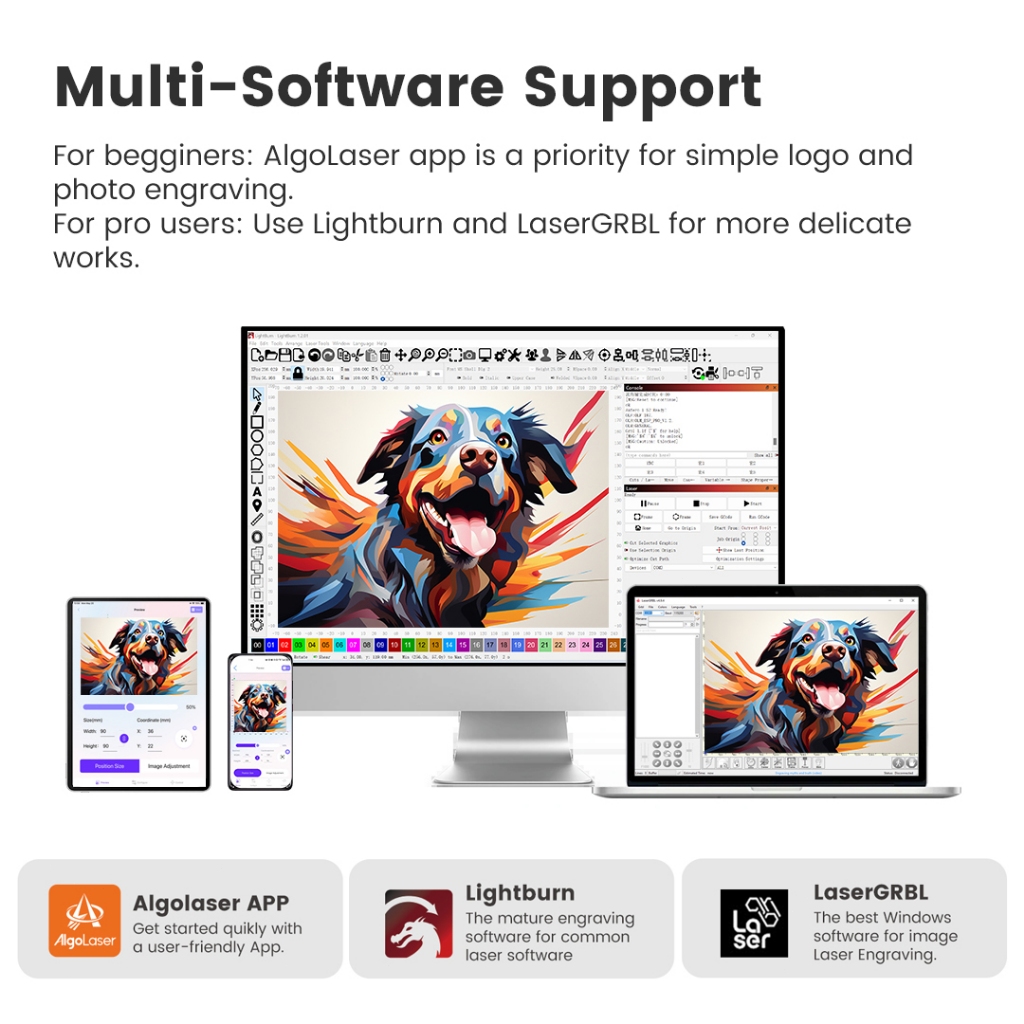 AlgoLaser Alpha MK2 Laser Engraver 20W Output Power Touch Screen App Offline Control for Metal MDF