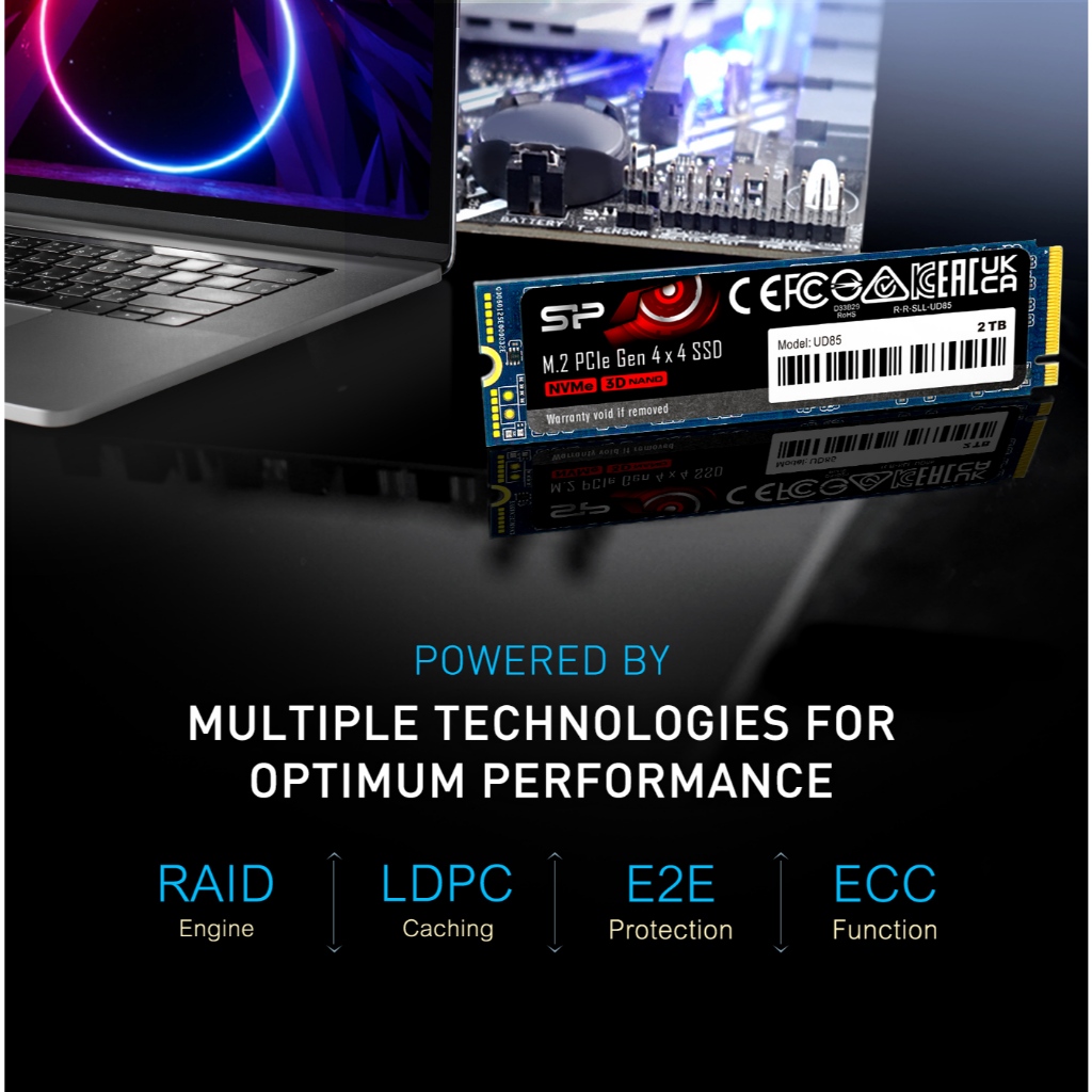 Silicon Power SSD NVMe PCIe Gen 4x4 M.2 2280, 250GB/ 500GB/ 1 TB - UD85- SSD for Laptop & PC