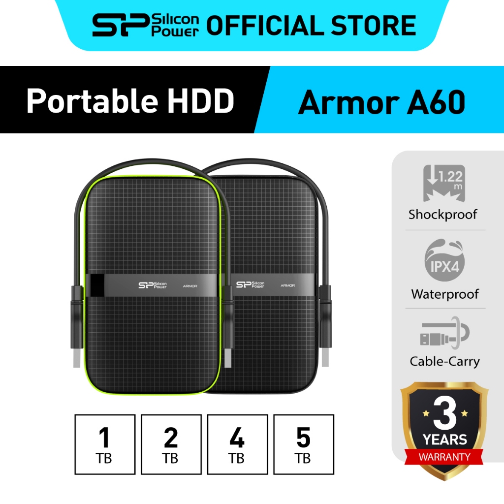 Silicon Power External Hard Disk Drive Shockproof & water resistance (1TB/2TB/4TB) A60 - 3Y warranty