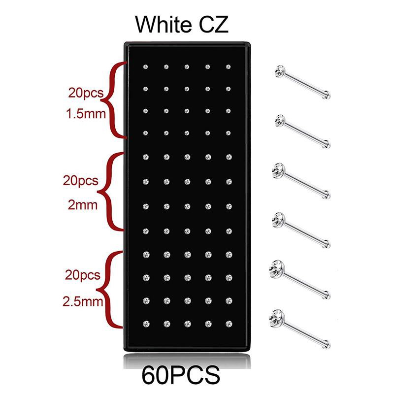 60pcs Stainless Steel Nose Studs Rings Piercing Pin Body Jewelry 22G 1.5mm 2mm 2.5mm