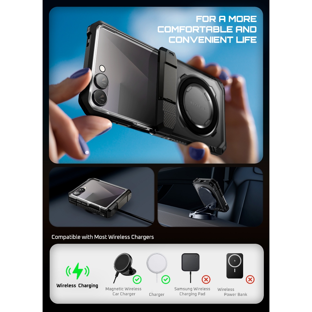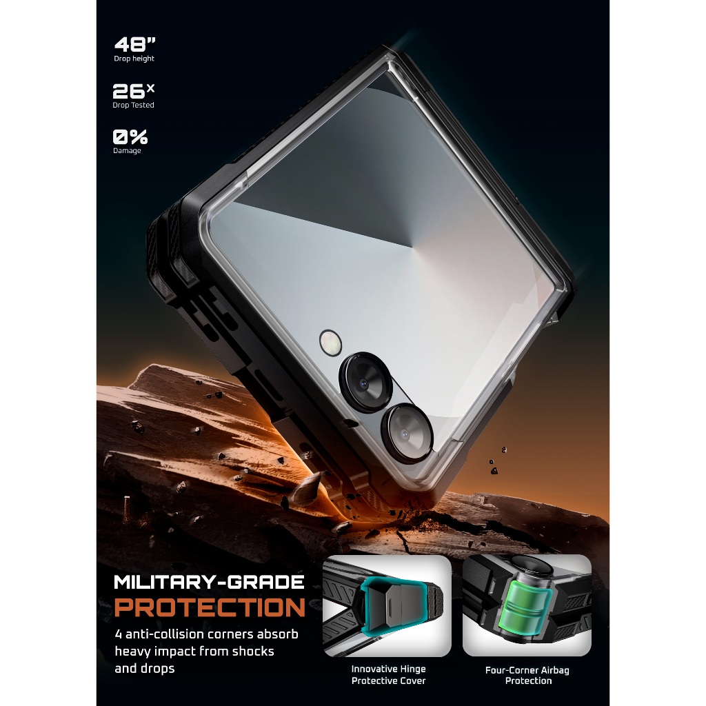 SUPCASE Unicorn Beetle Grip For Samsung Galaxy Z Flip 7 Case with Stand Front Glass Screen Protector Support Wireless Charging Hinge Protection Full Body Military Grade Phone Cover