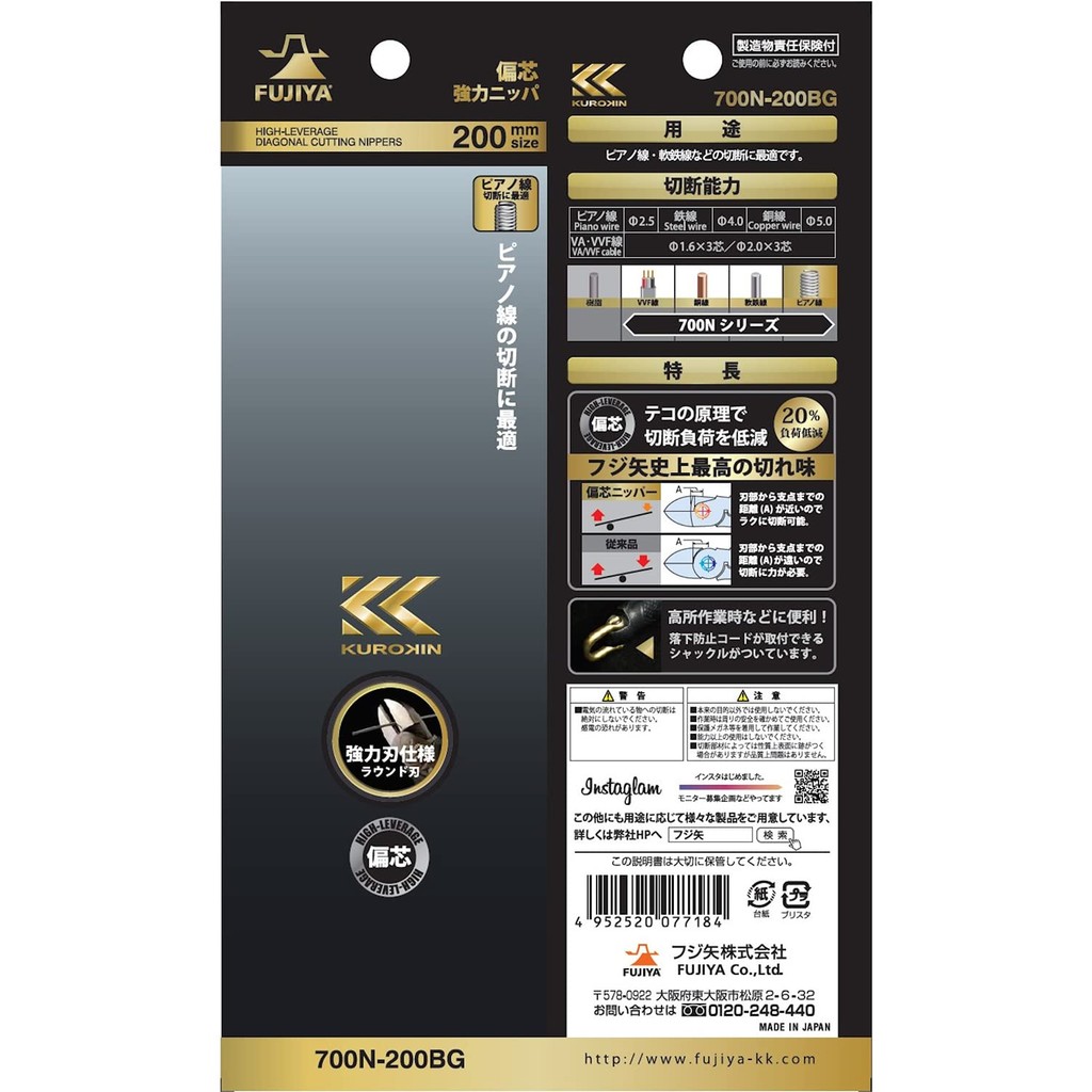 Fujiya Eccentric Strong Nipper black gold with shackle 200mm 700N-200BG