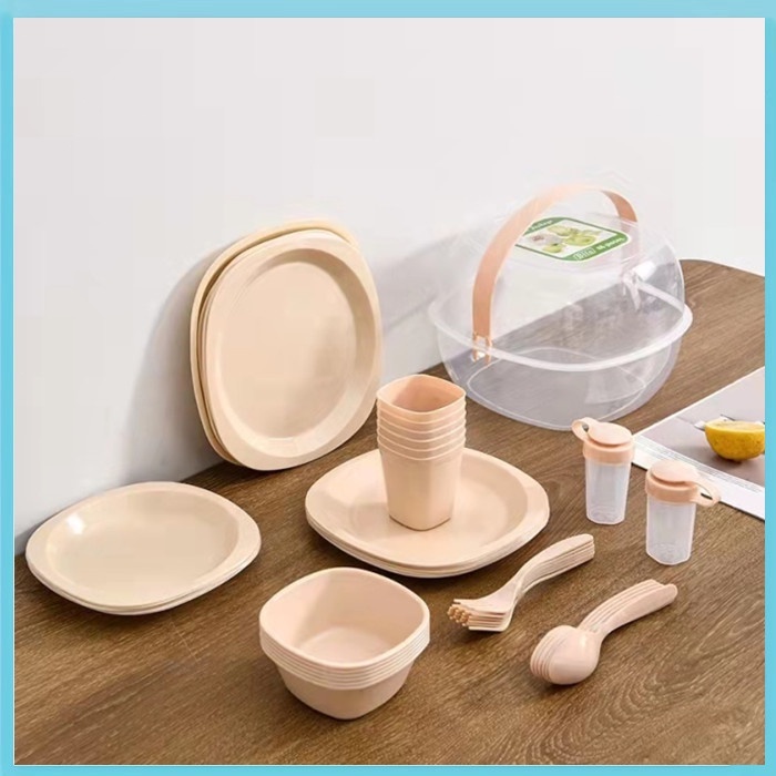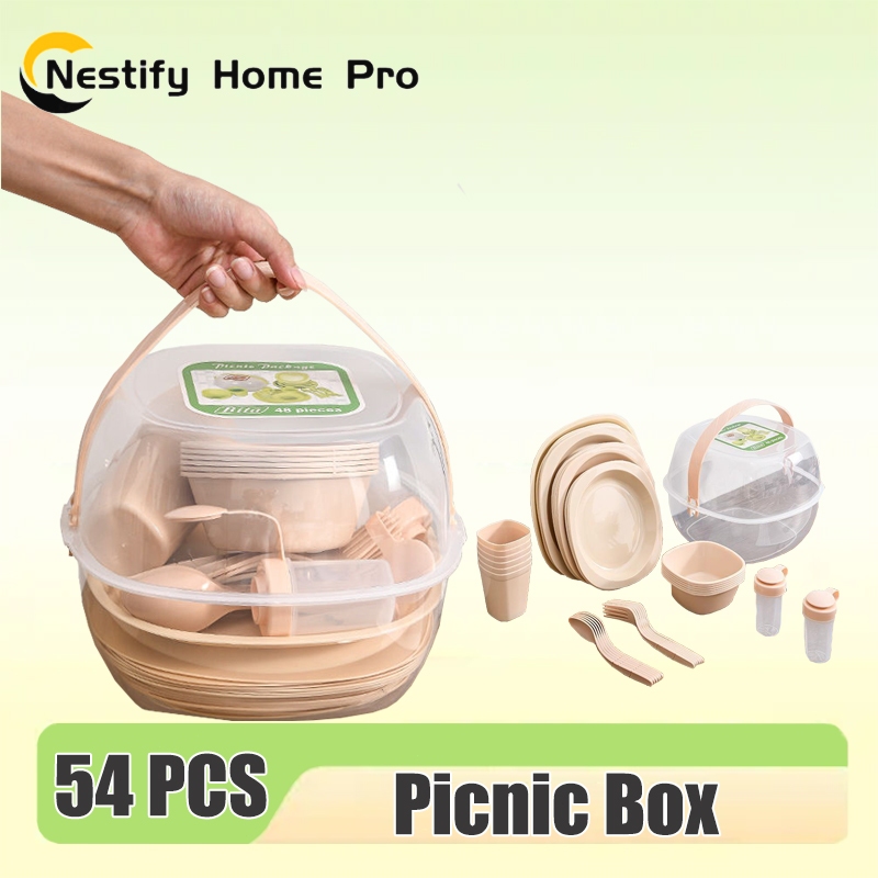 48/54 outdoor picnic cutlery set camping picnic plates spoons bowls chopsticks hand-held meal box