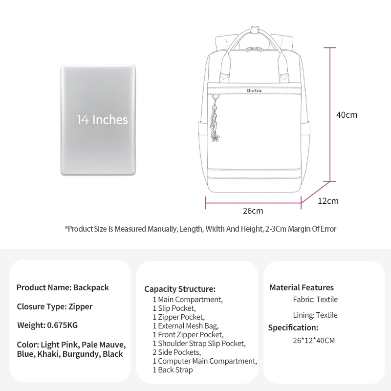 Chantria CB00639 Top Handle 14'' Laptop Compartment Waterproof All In One Backpack for Women