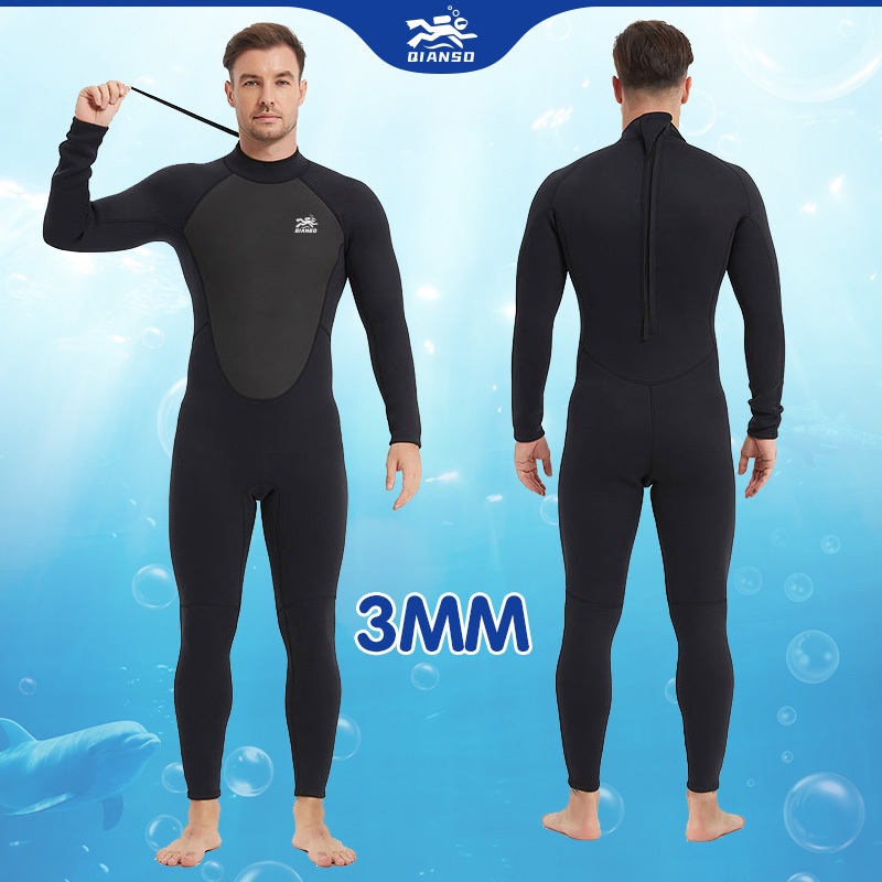 QSZ Ultra Stretch 3mm Neoprene Wetsuit Men Women One Piece Long Sleeves Scuba Diving Suits Back Zipper Swimsuit for Scuba Diving Swimming