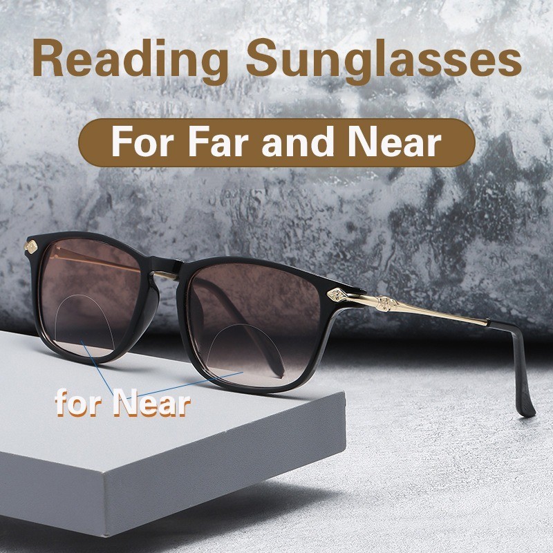 4 in 1 Retro Bifocal Reading Glasses +100 To +400 Anti Blue Light Presbyopia Glasses Far and Near Reading Eyeglasses Dual-purpose Large Frame Reading Sunglasses