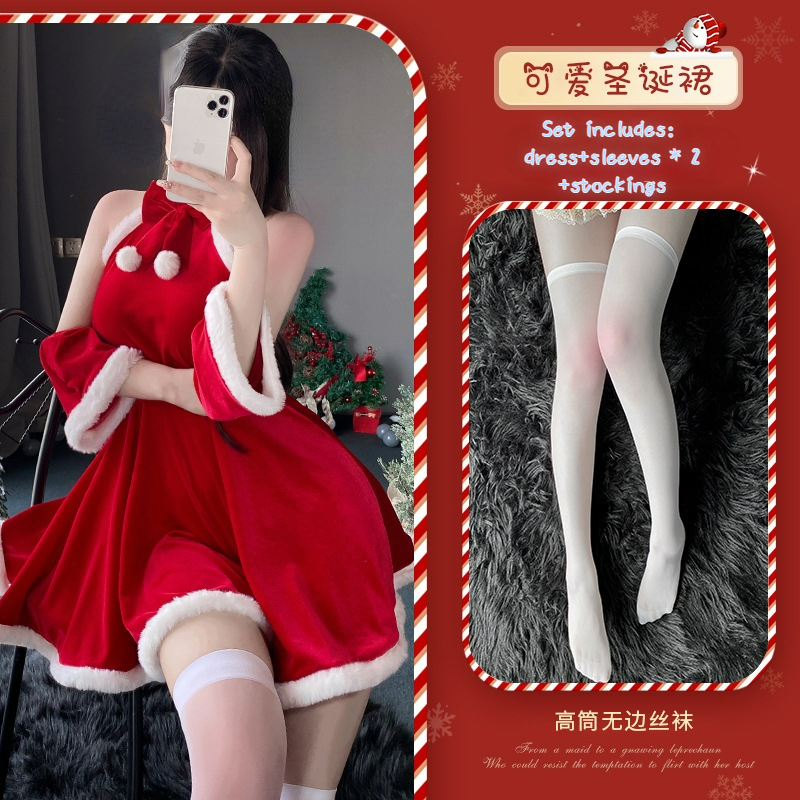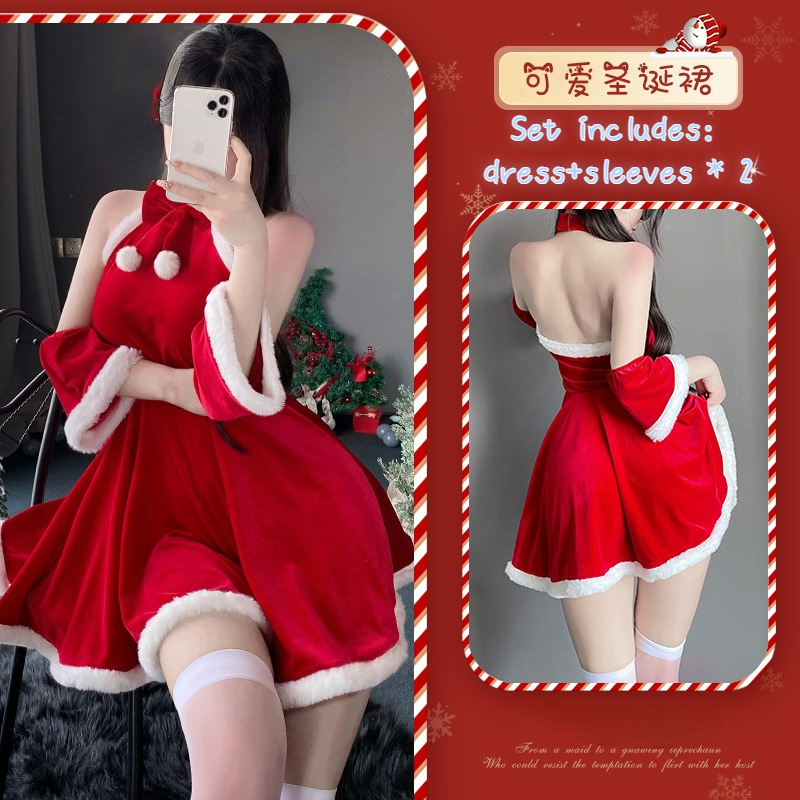 【Ready stock】Christmas Women New Year Uniform dress Maid uniform set stage costume