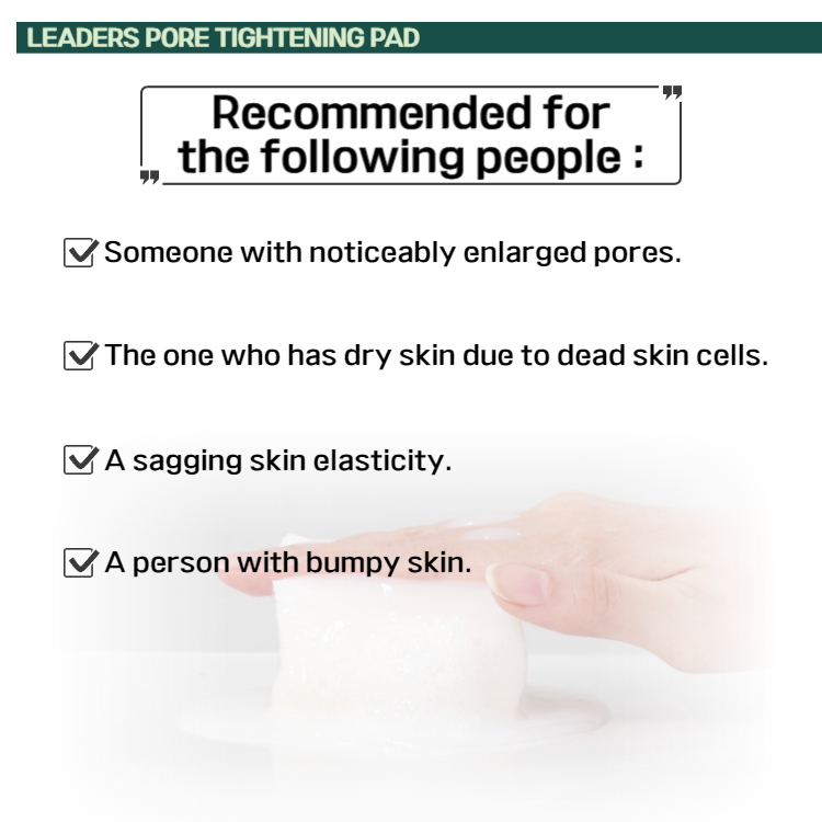 LEADERS Pore Tightening Pad | Skin Elasticity | Sebum control effect | Collagen Peptide | Daily Treatment Pad | Derm Pad