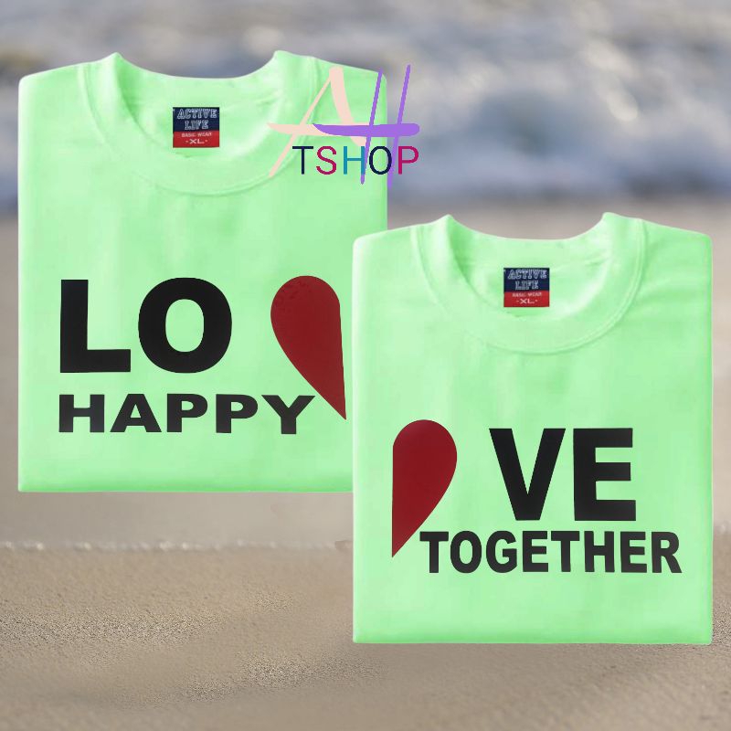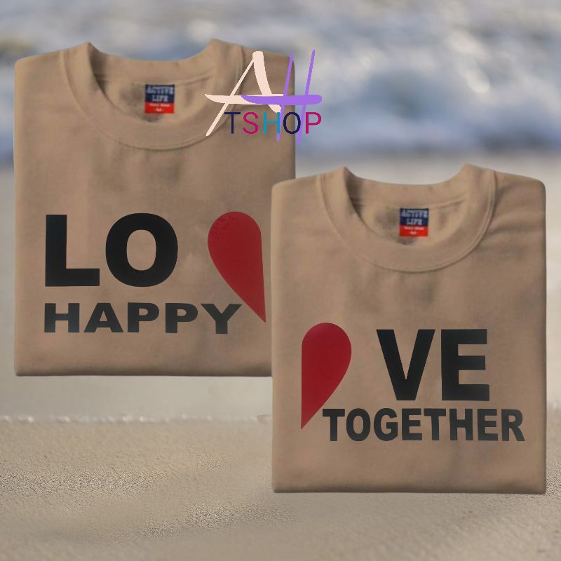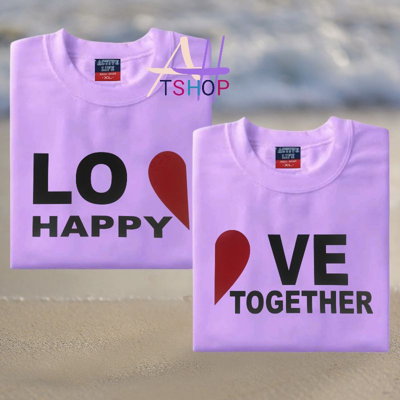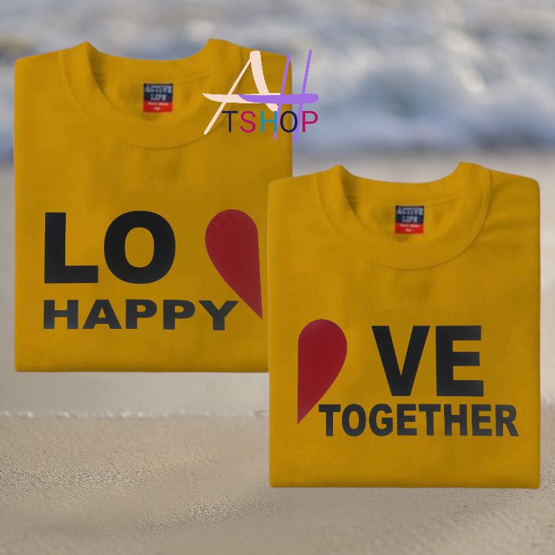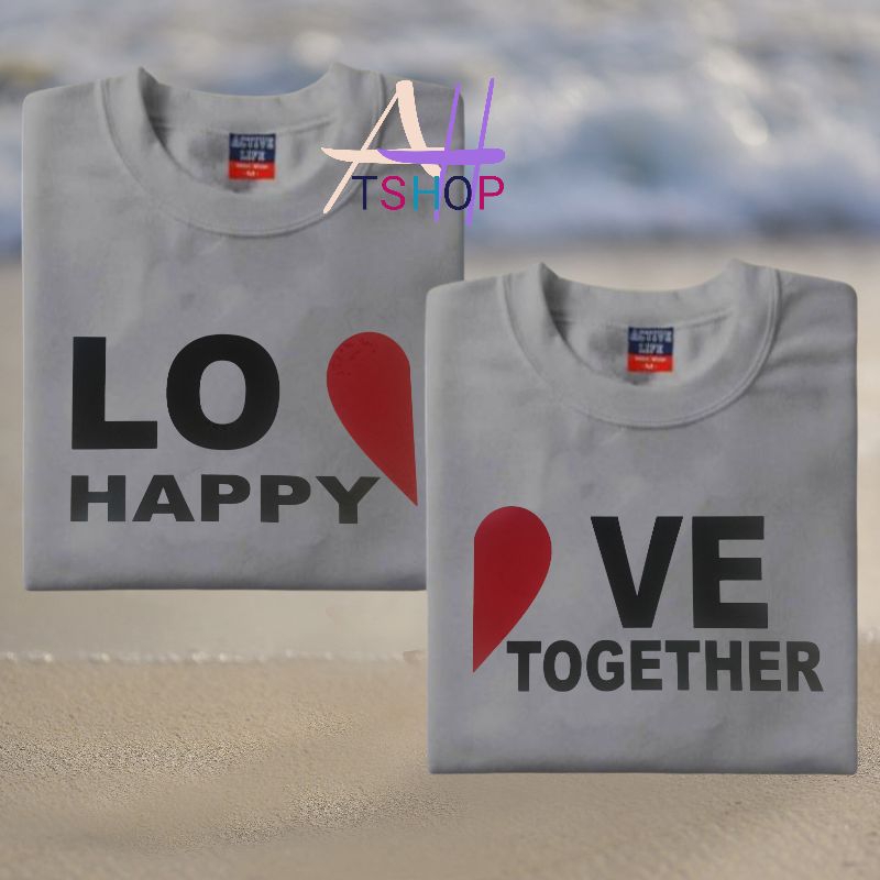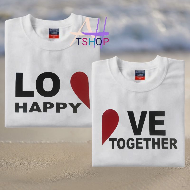 LOVE happy together couple 2pcs tshirt aesthetic minimalist design 100%fabric cotton unisex