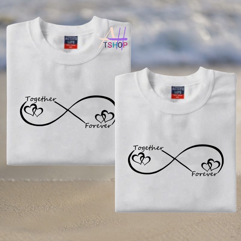 together/forever infinity couple 2pcs printed tshirt aesthetic minimalist design 100% fabric cotton