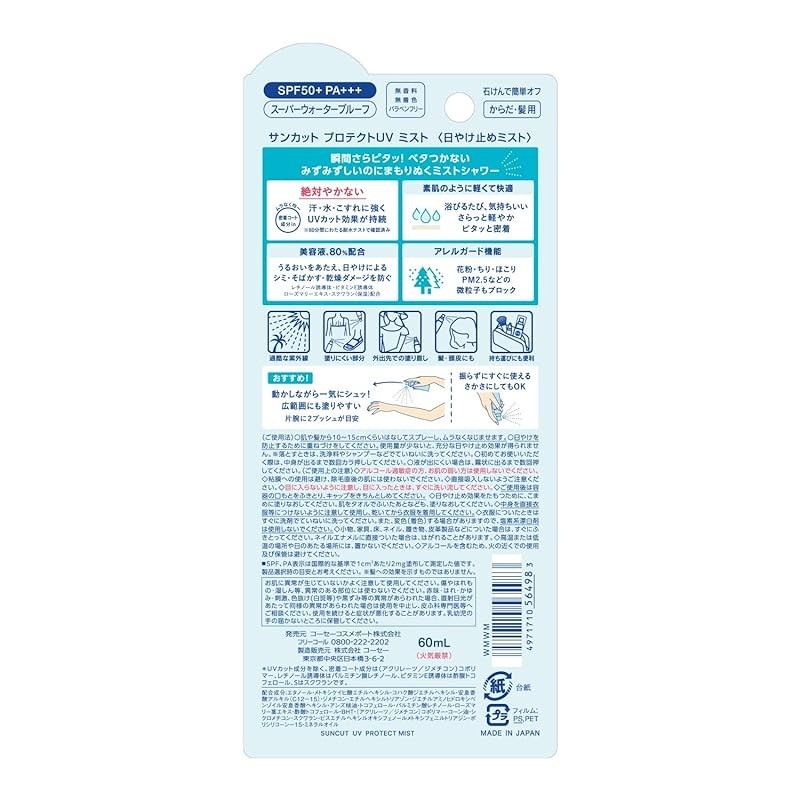 KOSE Suncut Protect UV Mist SPF50+ PA+++ [Body and Face] 2-piece set with bonus lotion