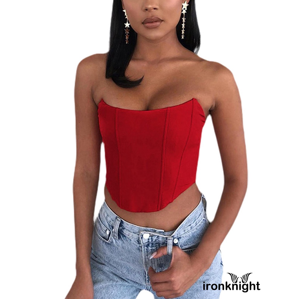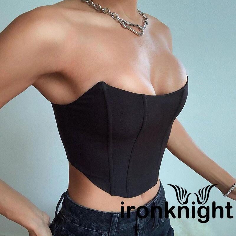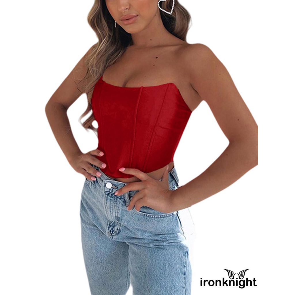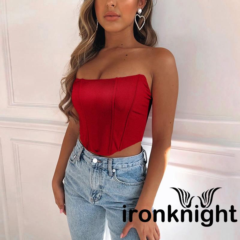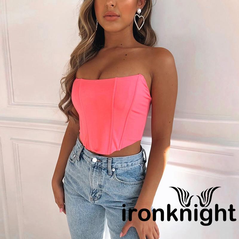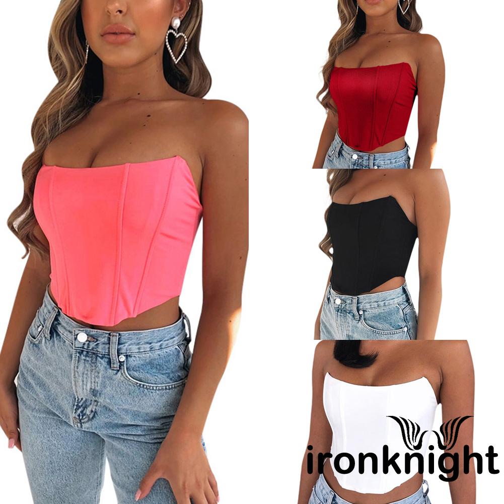 ✦YR-❀ℳay-Women´s Bright Satin Tube Top Summer Fashion Sexy Off Shoulder Backless Cropped Top Solid Color