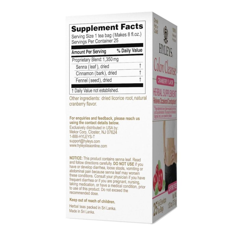 Hyleys Colon Cleanse Tea 25 Sachets - Cranberry Flavor