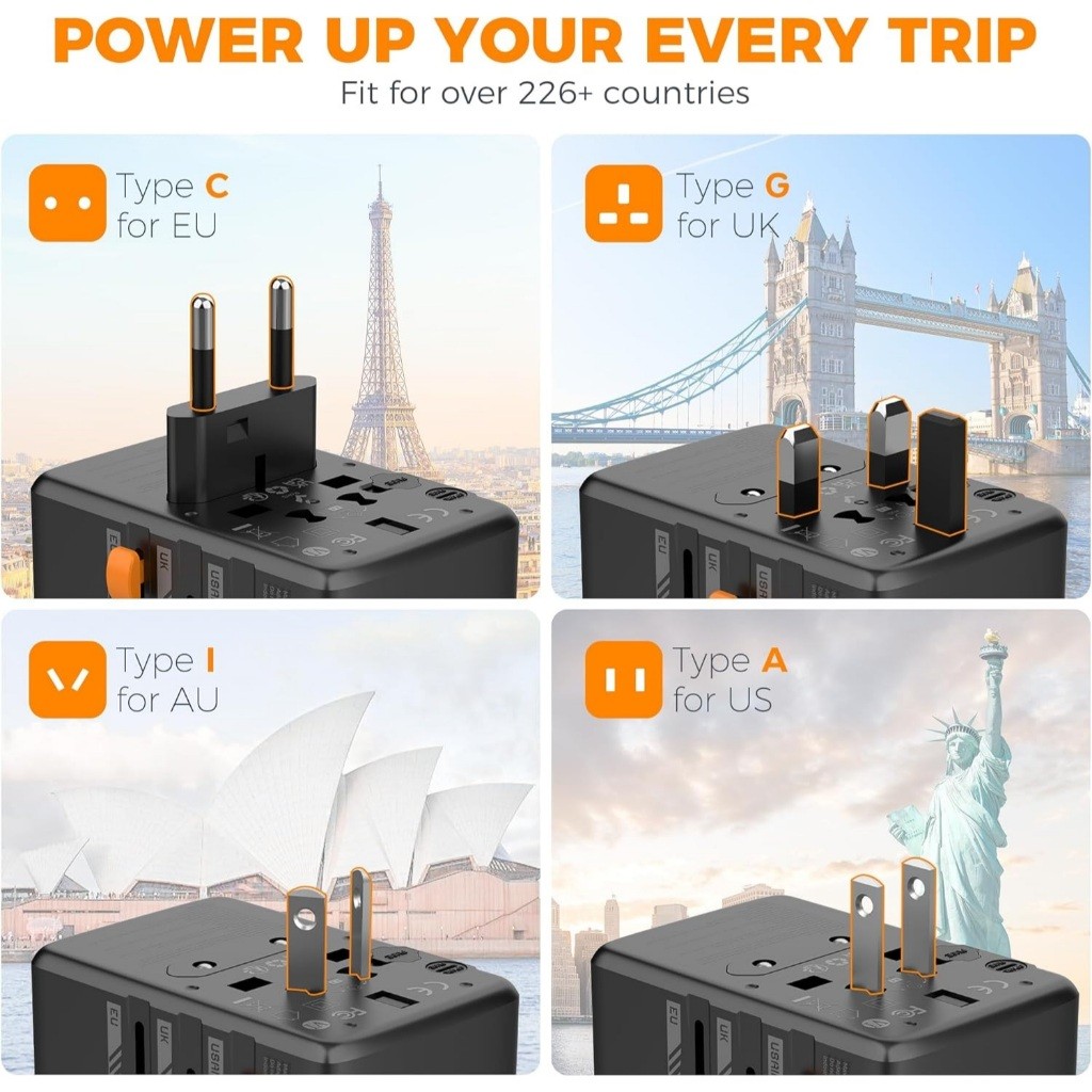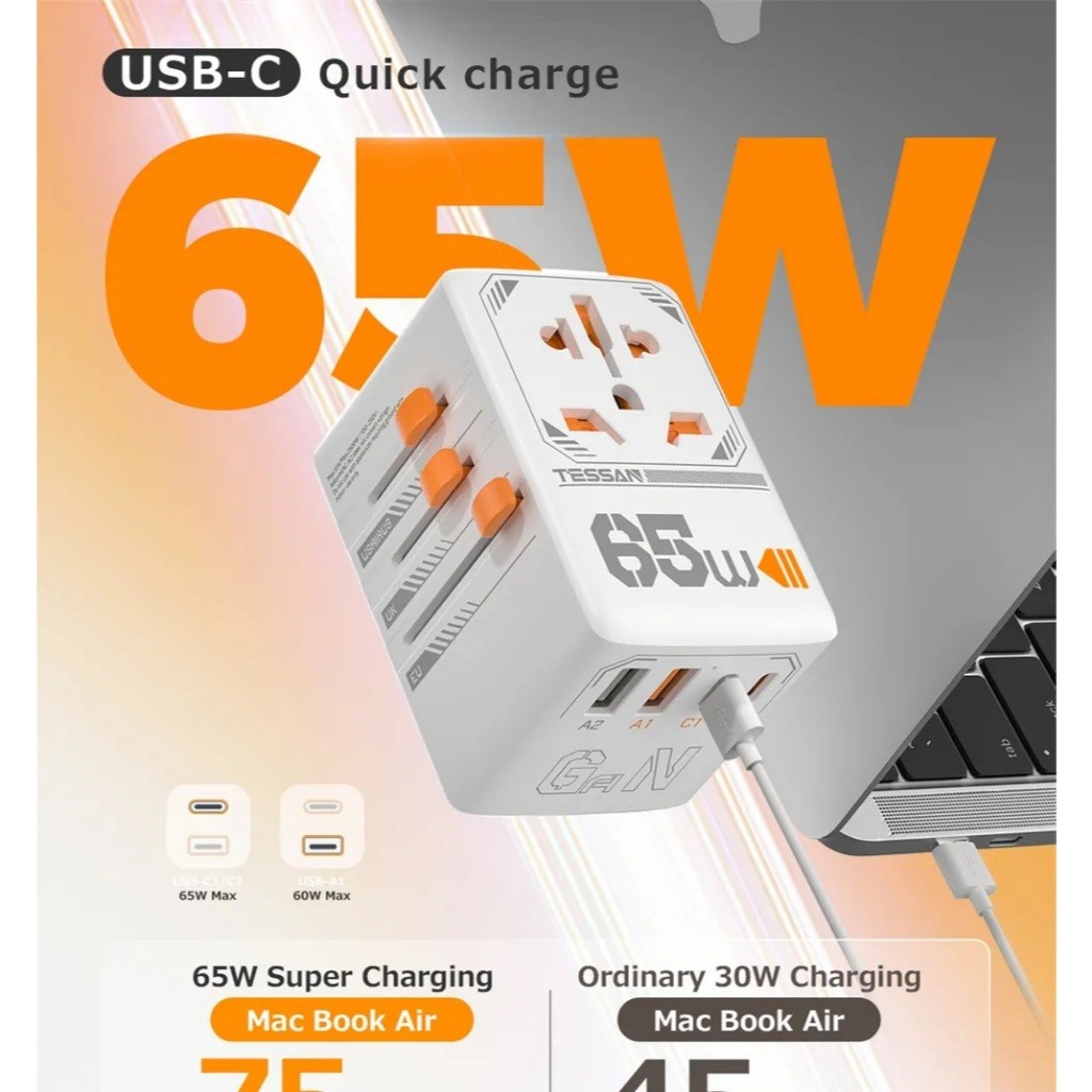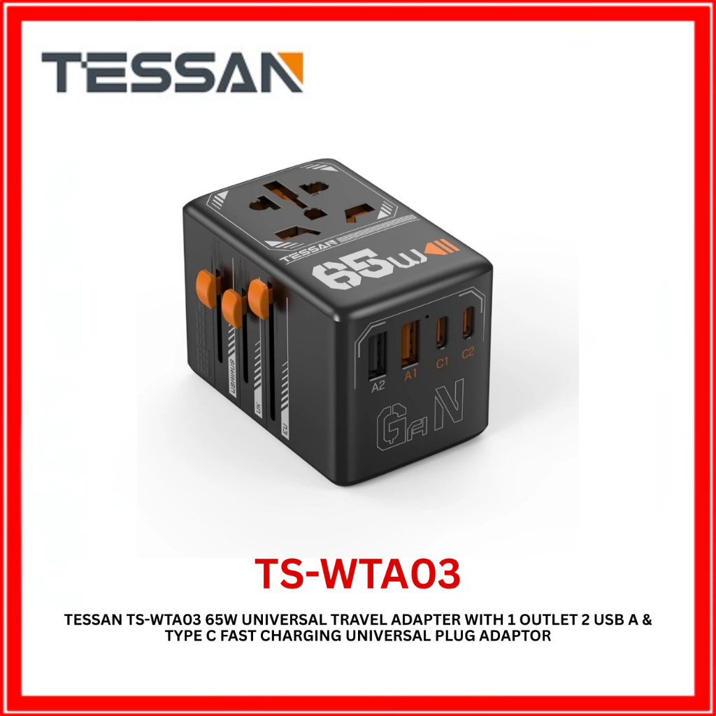 TESSAN TS-WTA03 Universal Travel Adapter with USB+Type C PD 65W Fast Charging Universal Plug Adaptor