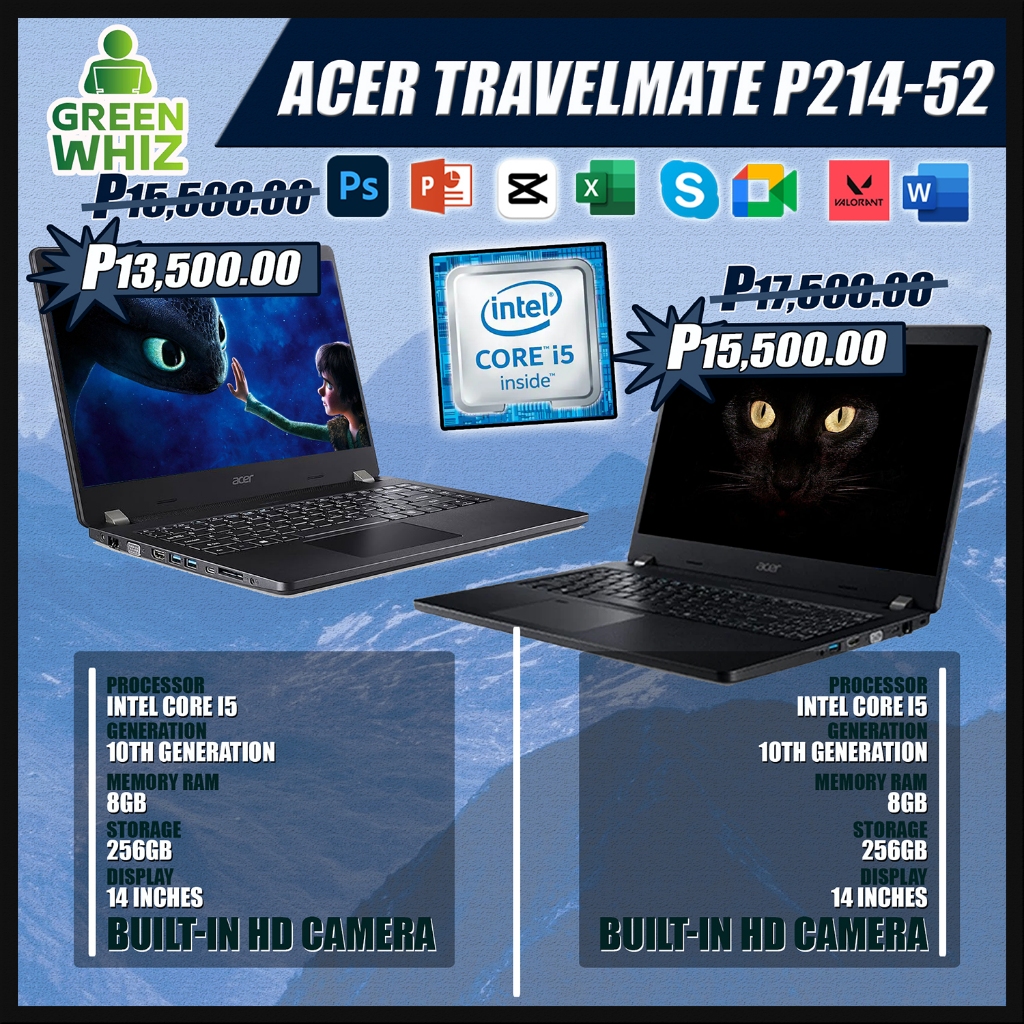 Affordable Laptop and Monitor. Intel Core i5 , 6th Gen - 10th Gen, 8gb - 16gb RAM, 256gb SSD