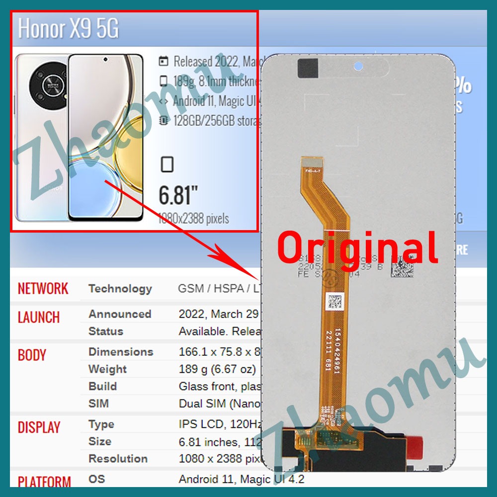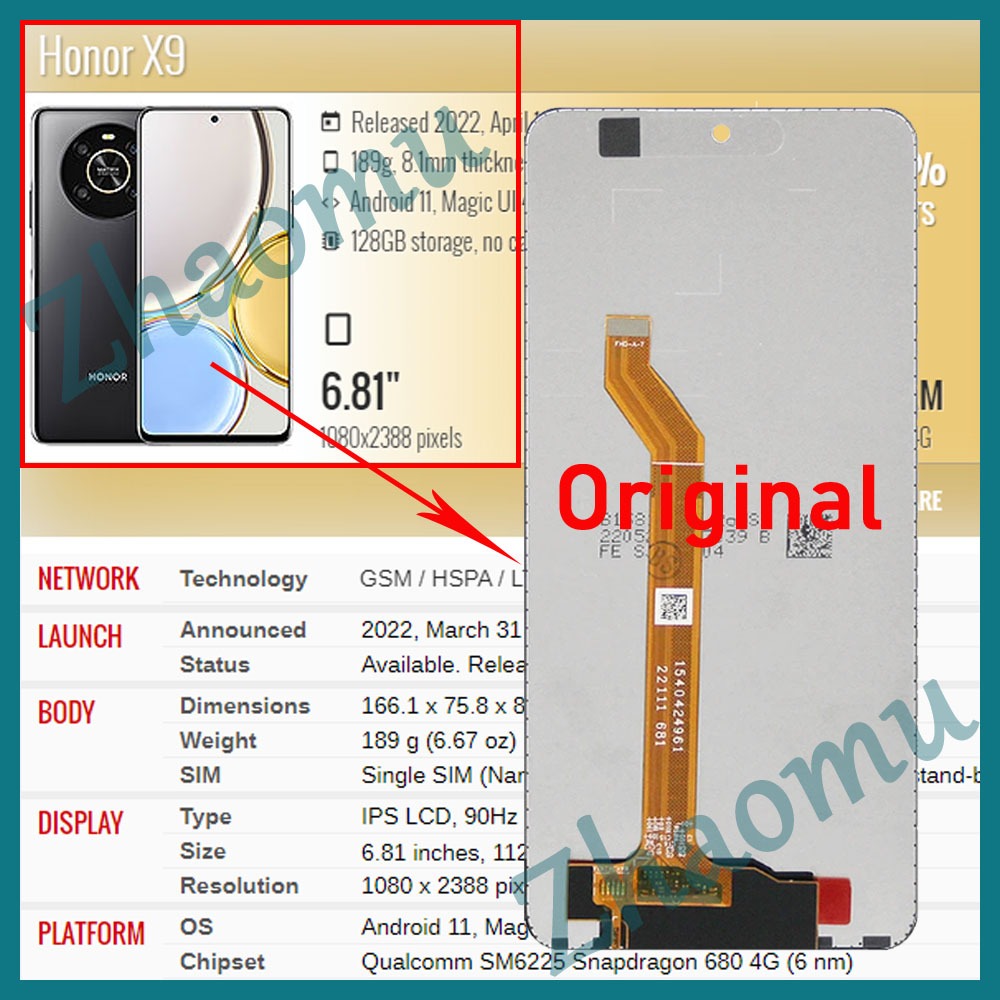 Original Honor X9 4G 5G LCD Display Touch Screen Replacement