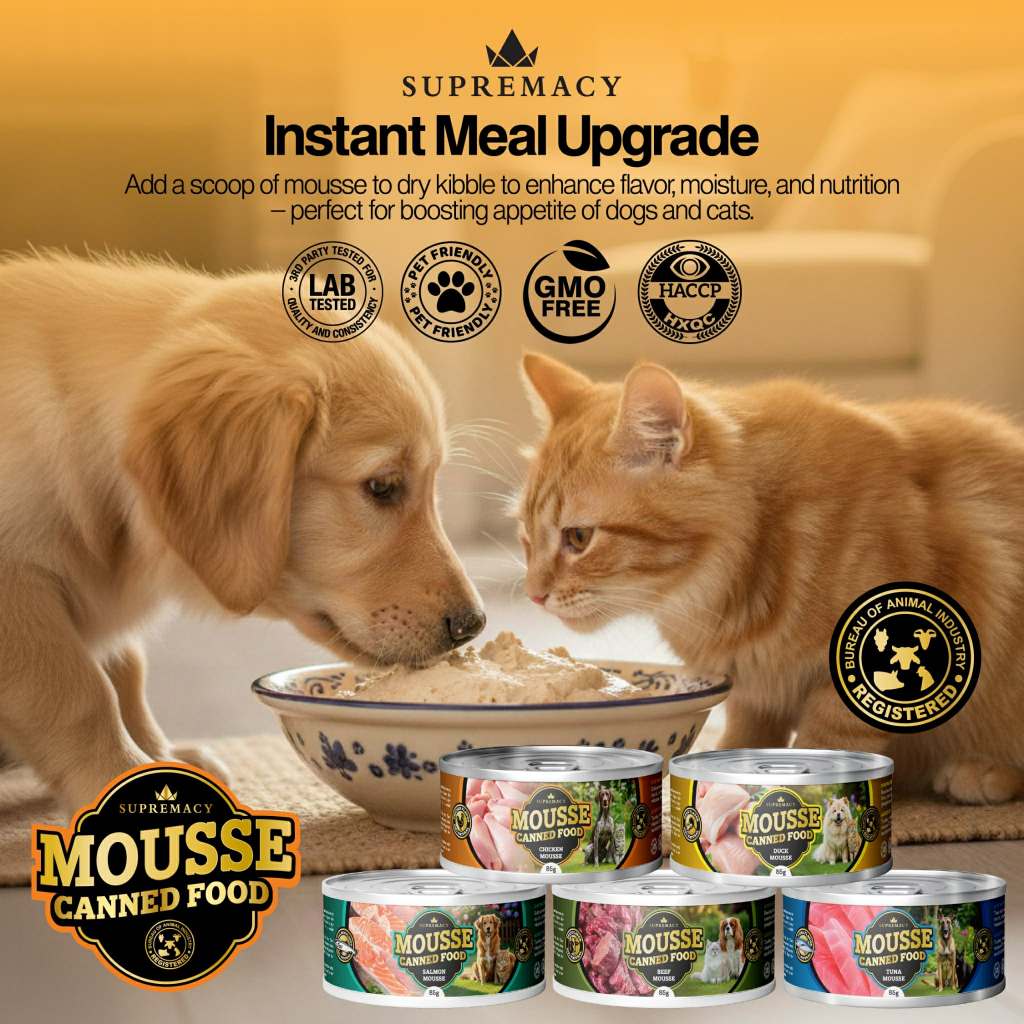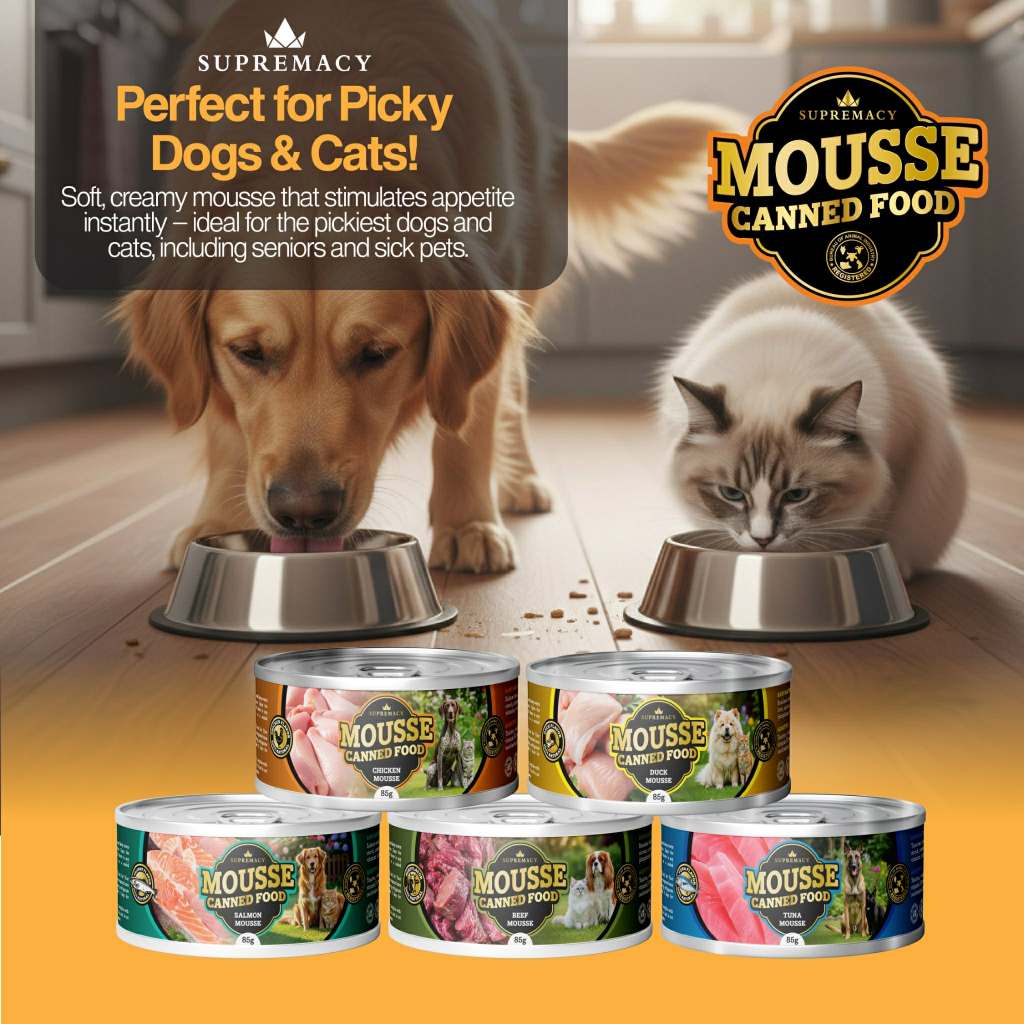 Supremacy 35% Protein Mousse Wet Topper Food 85g Low Salt 0.3% For Cats Dogs Picky Eaters All Breeds