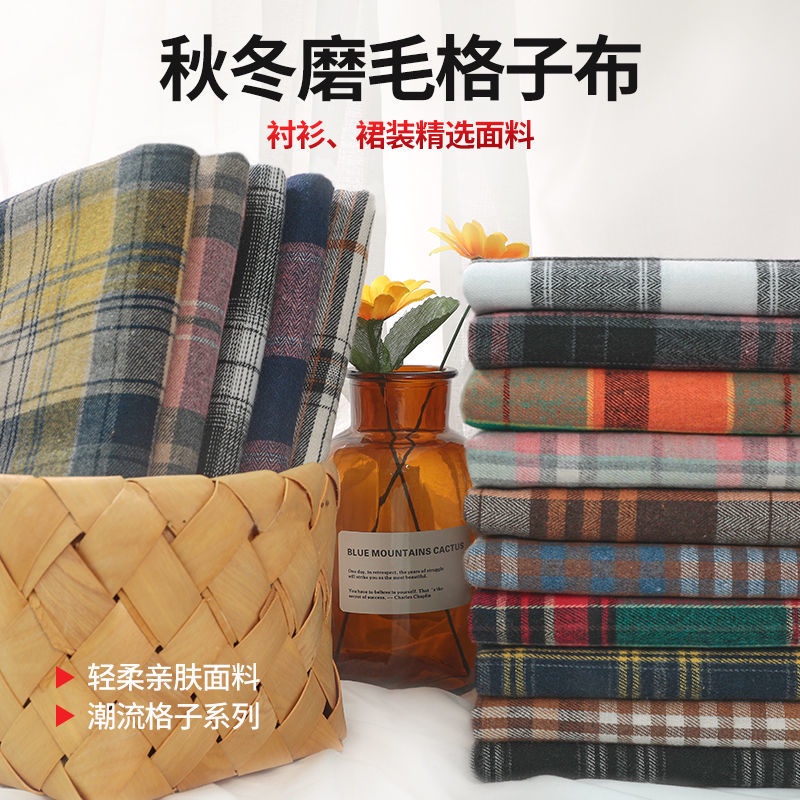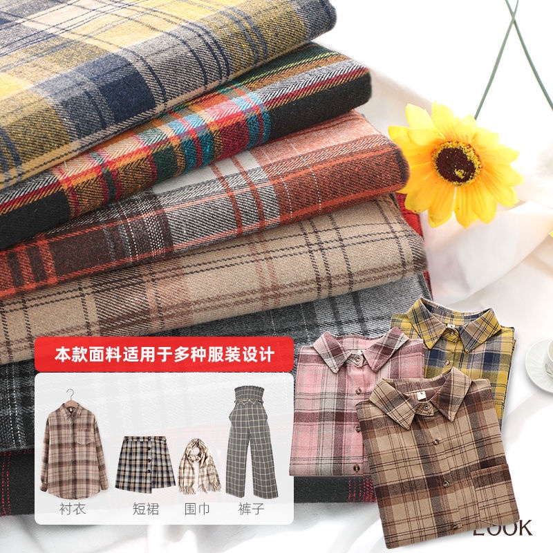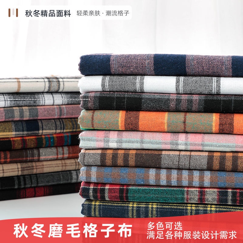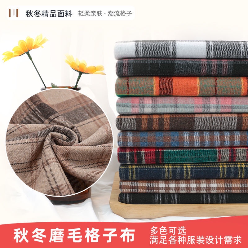 Autumn and winter brushed plaid shirt fabric British style pattern clothing fabric thick handmade