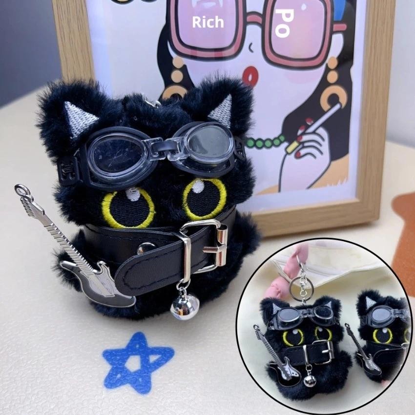 Plush Little Black Cat Pendant, Plush Toys Portable Cat Keychain,Bag Accessories Backpack Decoration