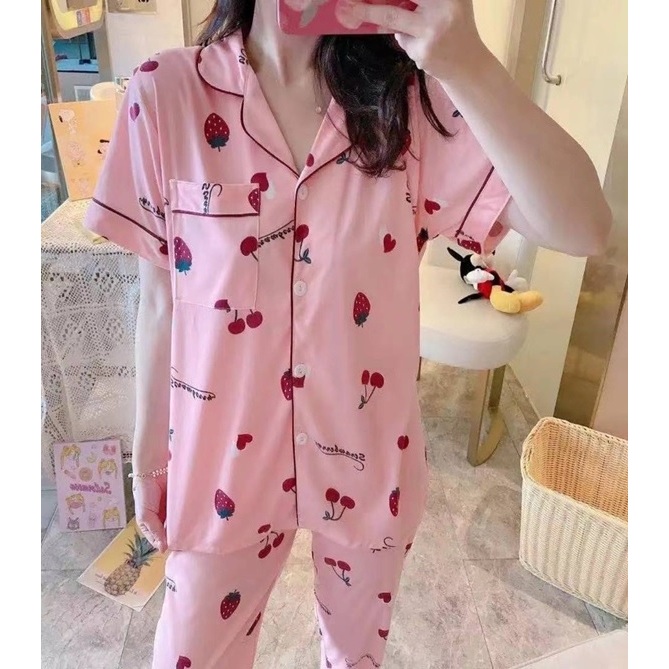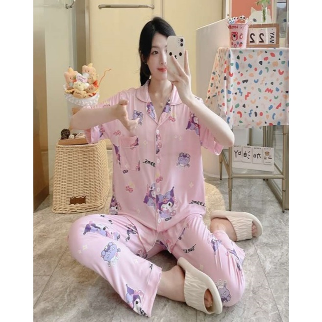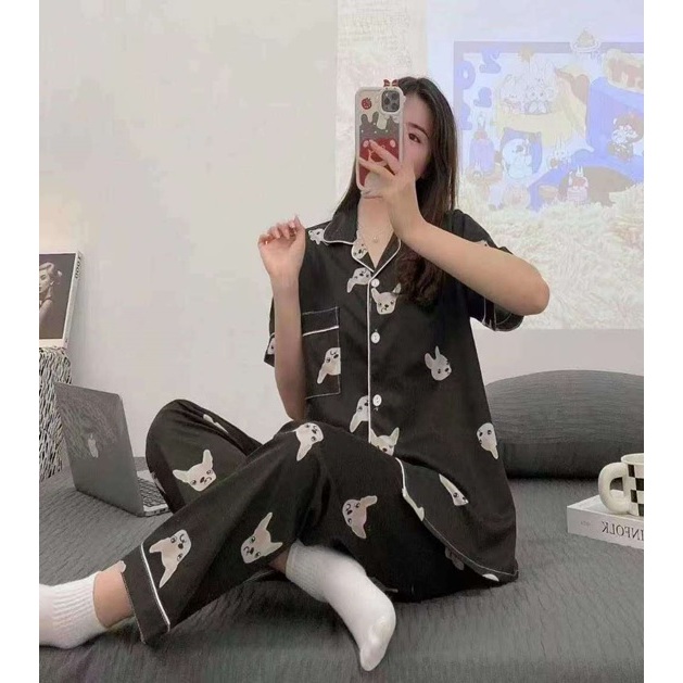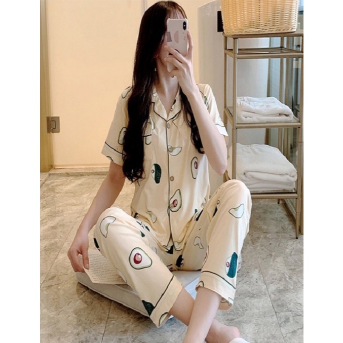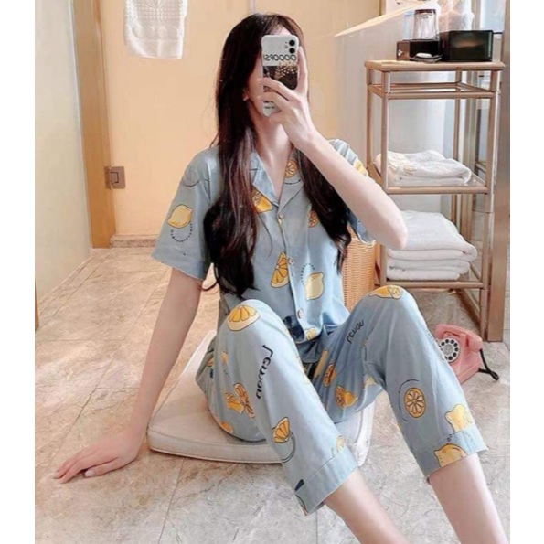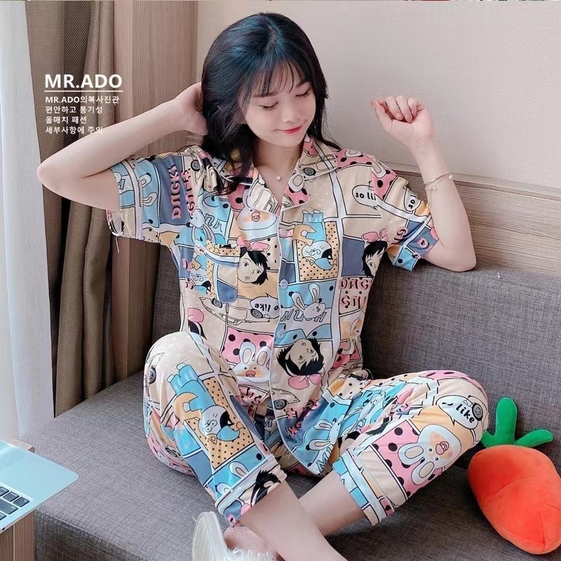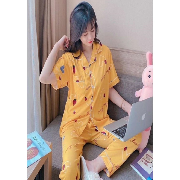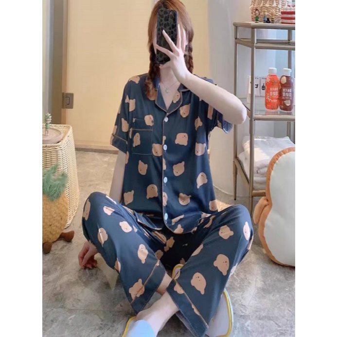 M - XXL Women Cotton Short Sleeve Long Pants Pajamas Cotoon Sleepwear w/ DESIGN
