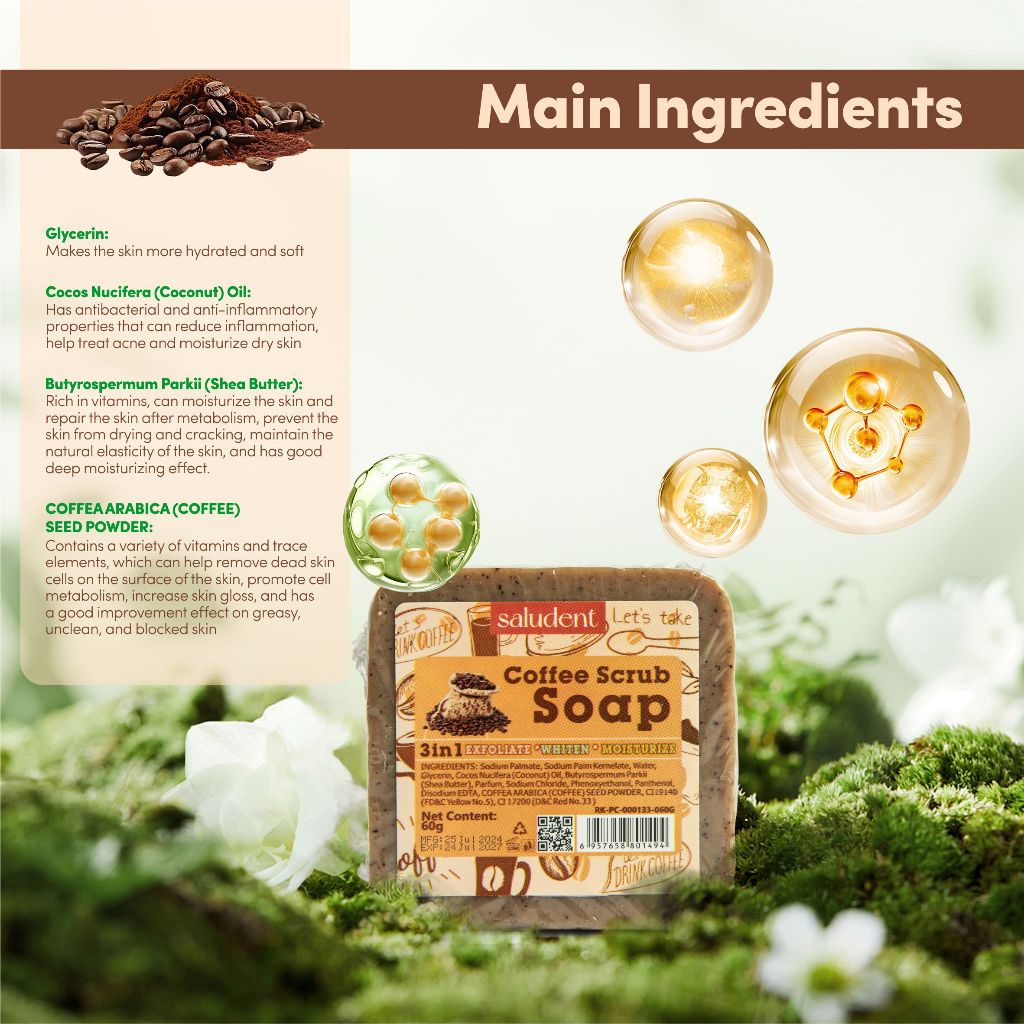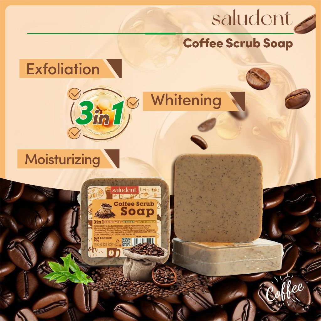 Saludent Coffee Body Scrub Soap Whitening Exfoliating Moisturizing 3in1 Face whitening soap 60g