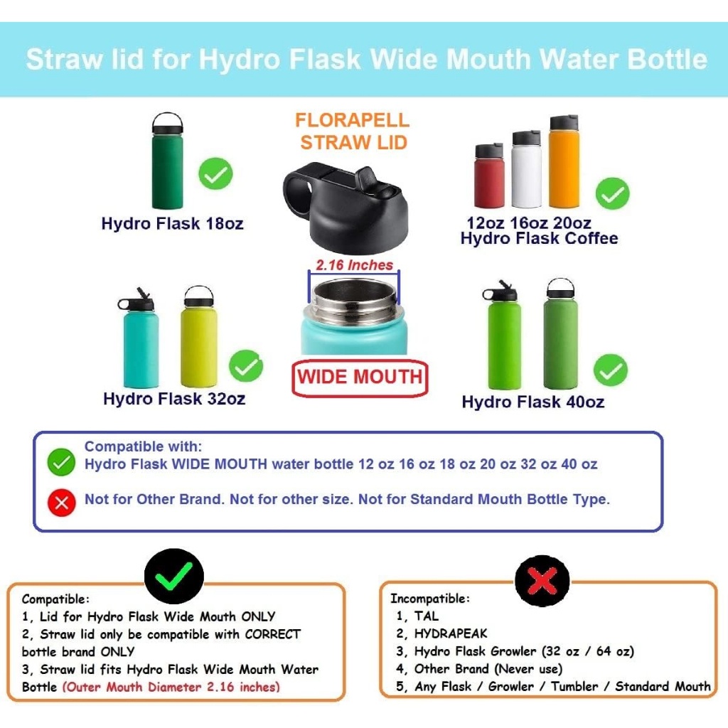 Hydro Flask Wide Mouth bottle Straw Lid Replacement Cover Compatible with 12-64oz Accessories
