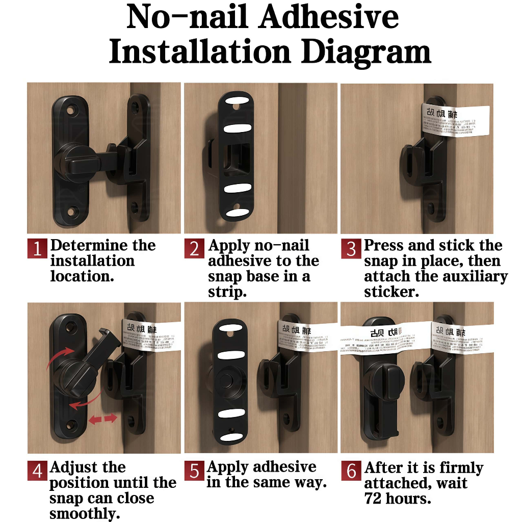Aluminum Door Lock-No-Drill Anti-Theft Right Angle Slide Latch 90°/180° Adjustable Sliding Bolt