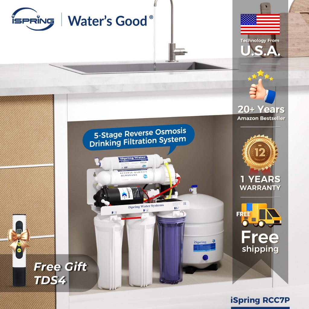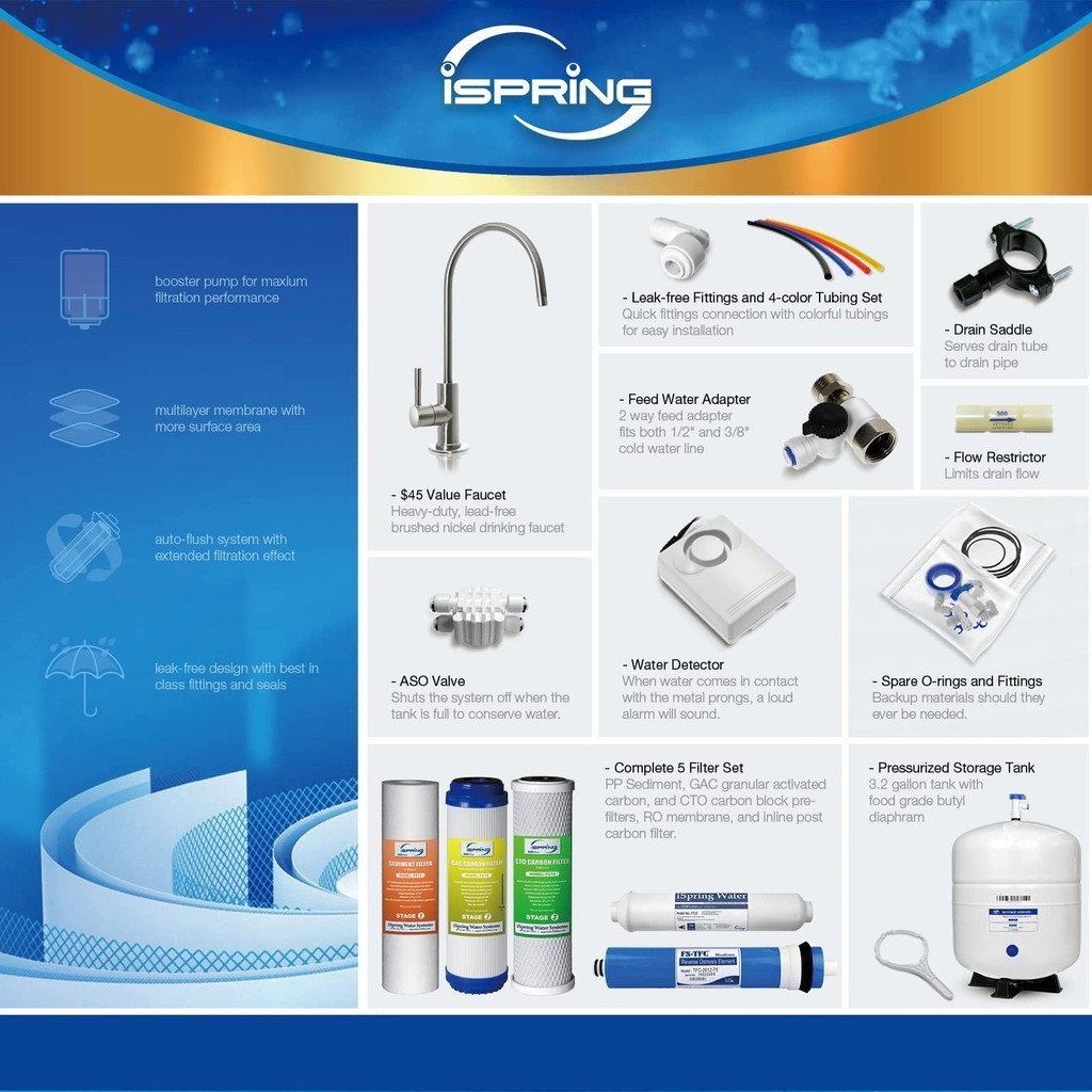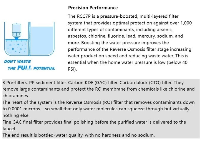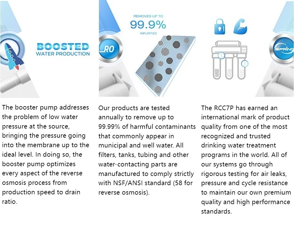 iSpring RCC7P Drinking Water Filtration System 75 GPD Reverse Osmosis System 5-Stage Boosted Performance Superb Taste Under Sink Reverse Osmosis with Faucet and pump