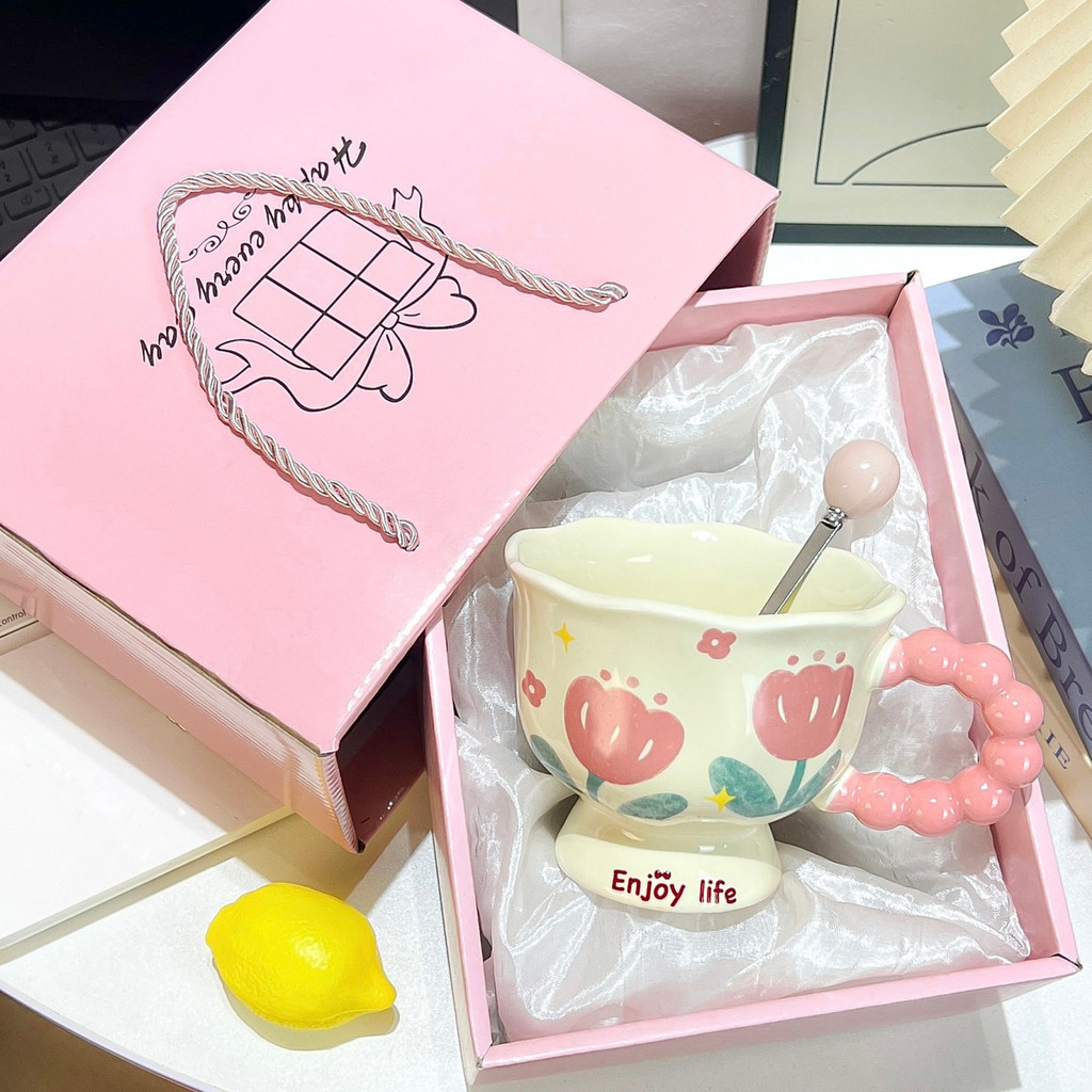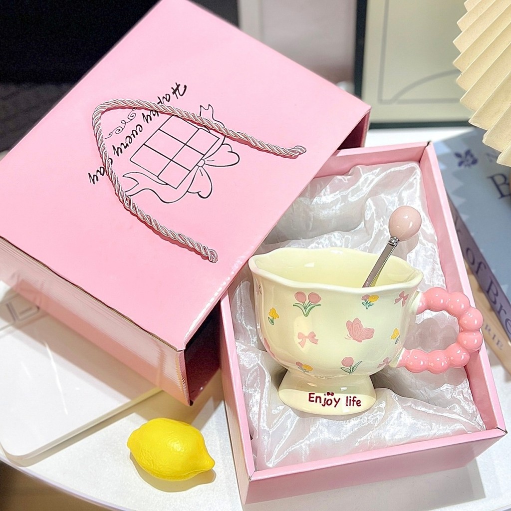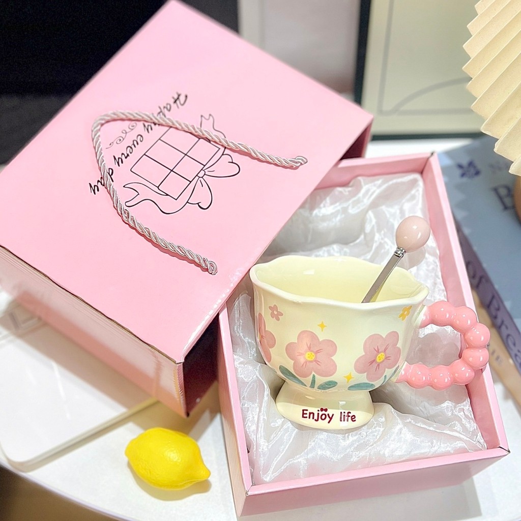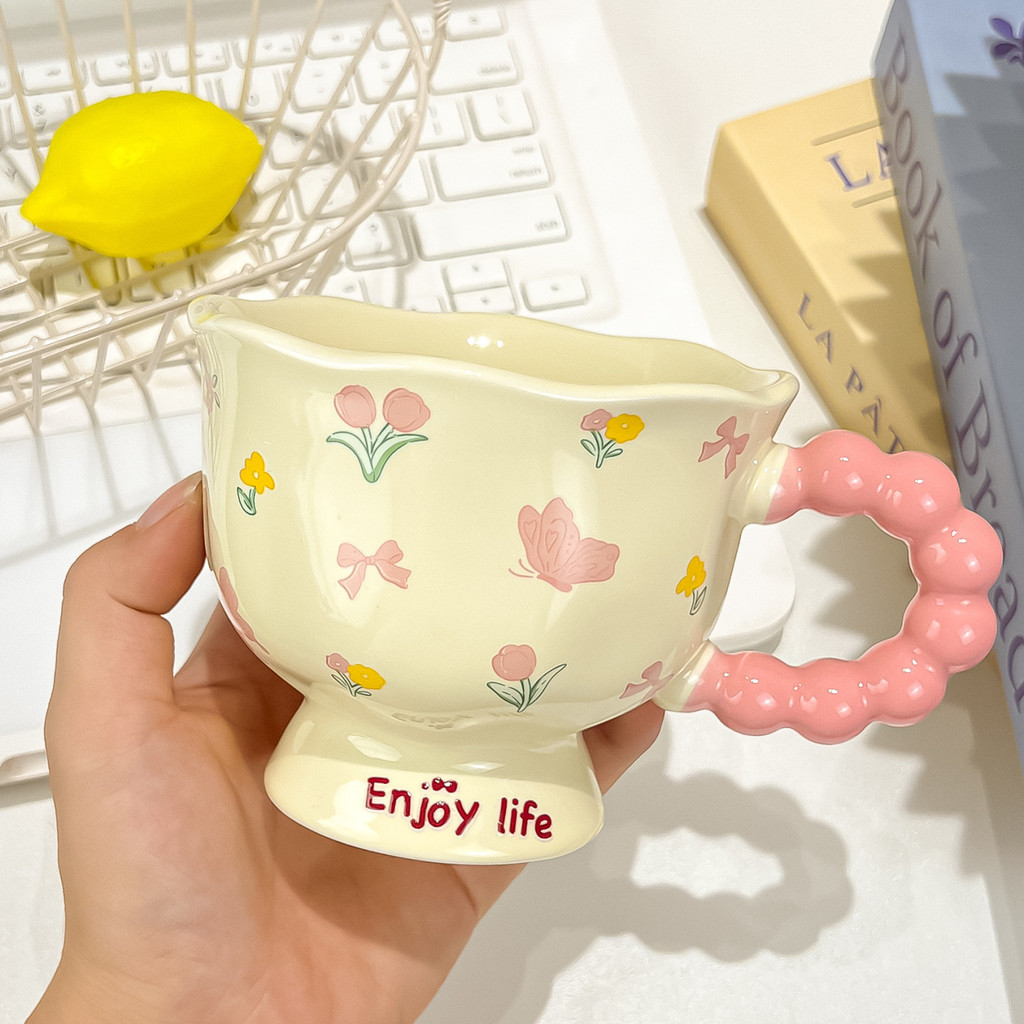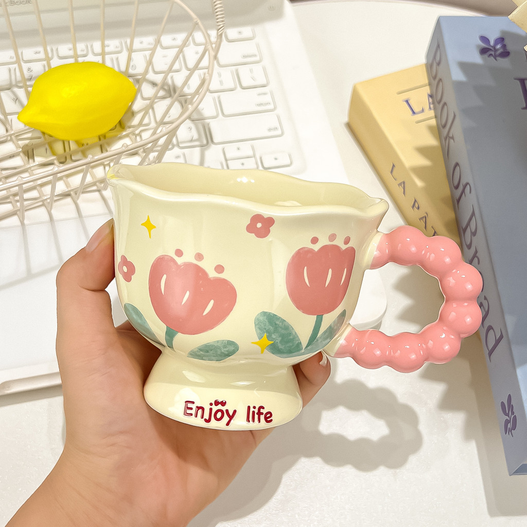 Mug Water Cup Coffee Cup Milk Cup Cute ins Flower Mug High-value Ceramic Cup Couple Water Cup Girl Birthday Gift Souvenir