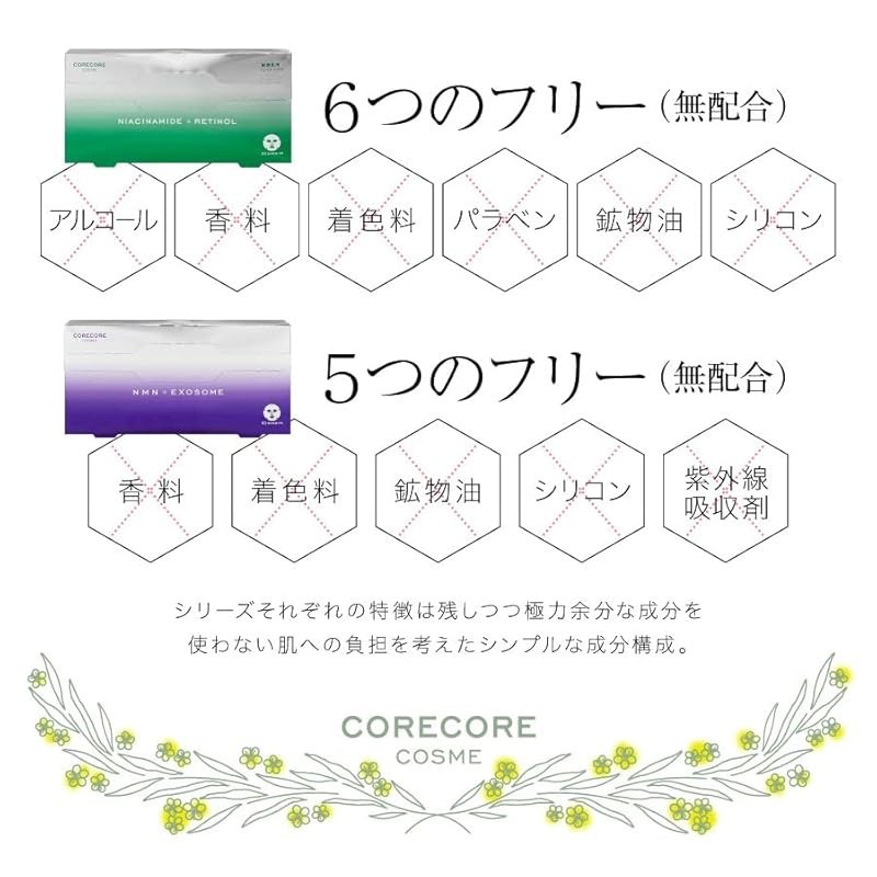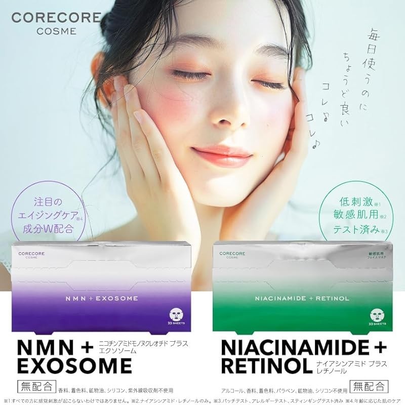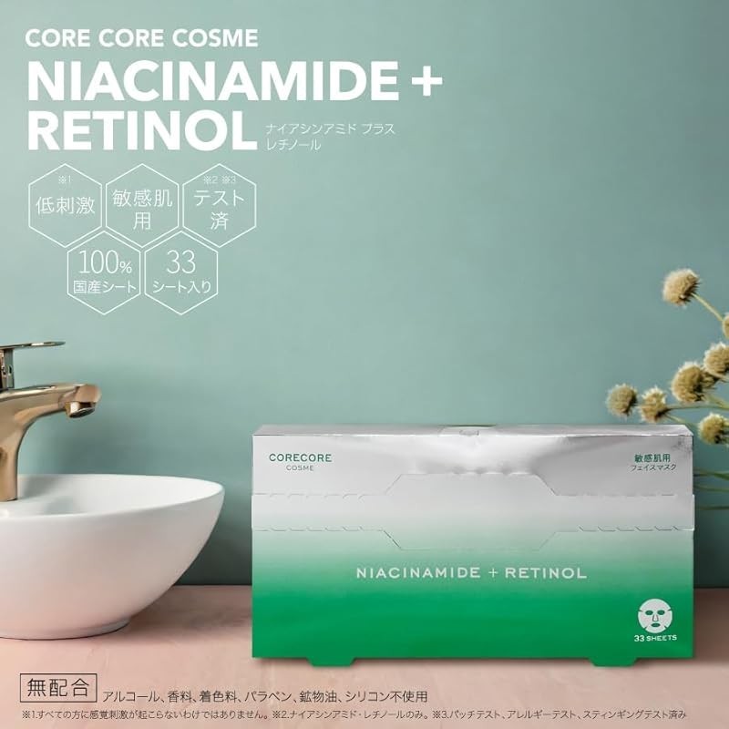 CORE CORE COSME NIACINAMIDE+RETINOL Niacinamide Retinol Face Mask 33 Sheets Sensitive Skin Low Irritation Made in Japan Moisturizing Skincare
