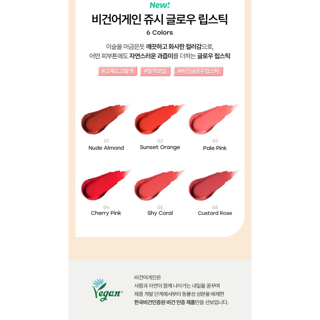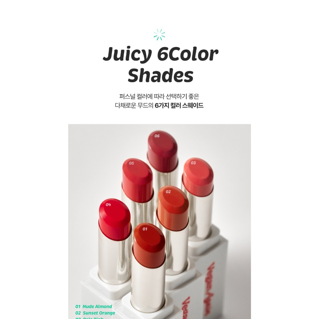 Touch in SOL VeganAgain Juicy Glow Lipstick 3.5g / Long-Lasting Moist Shine / 6 Colors