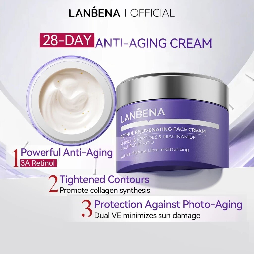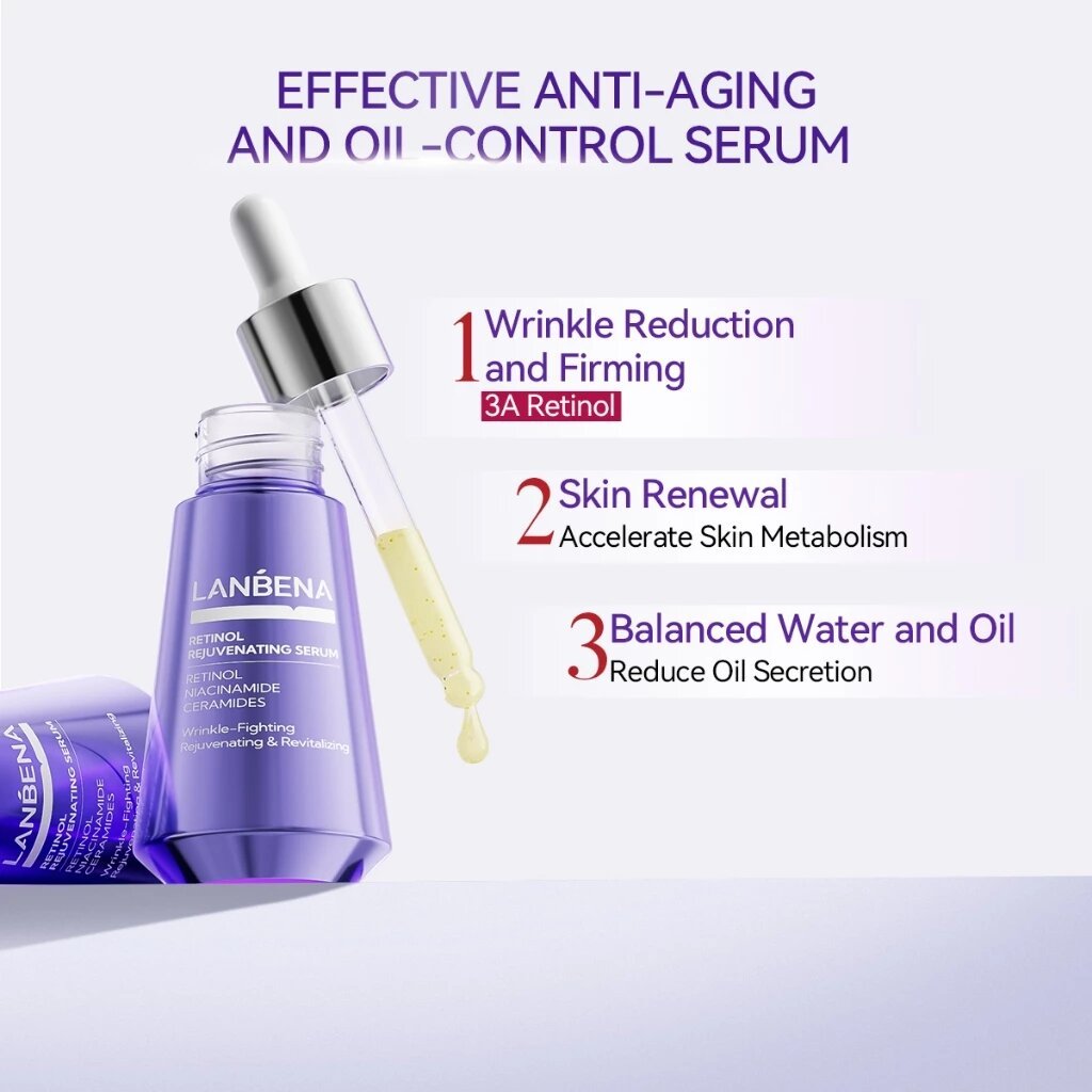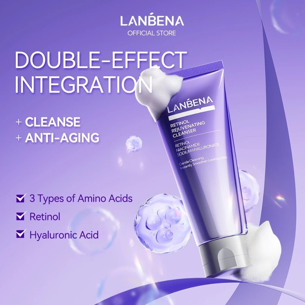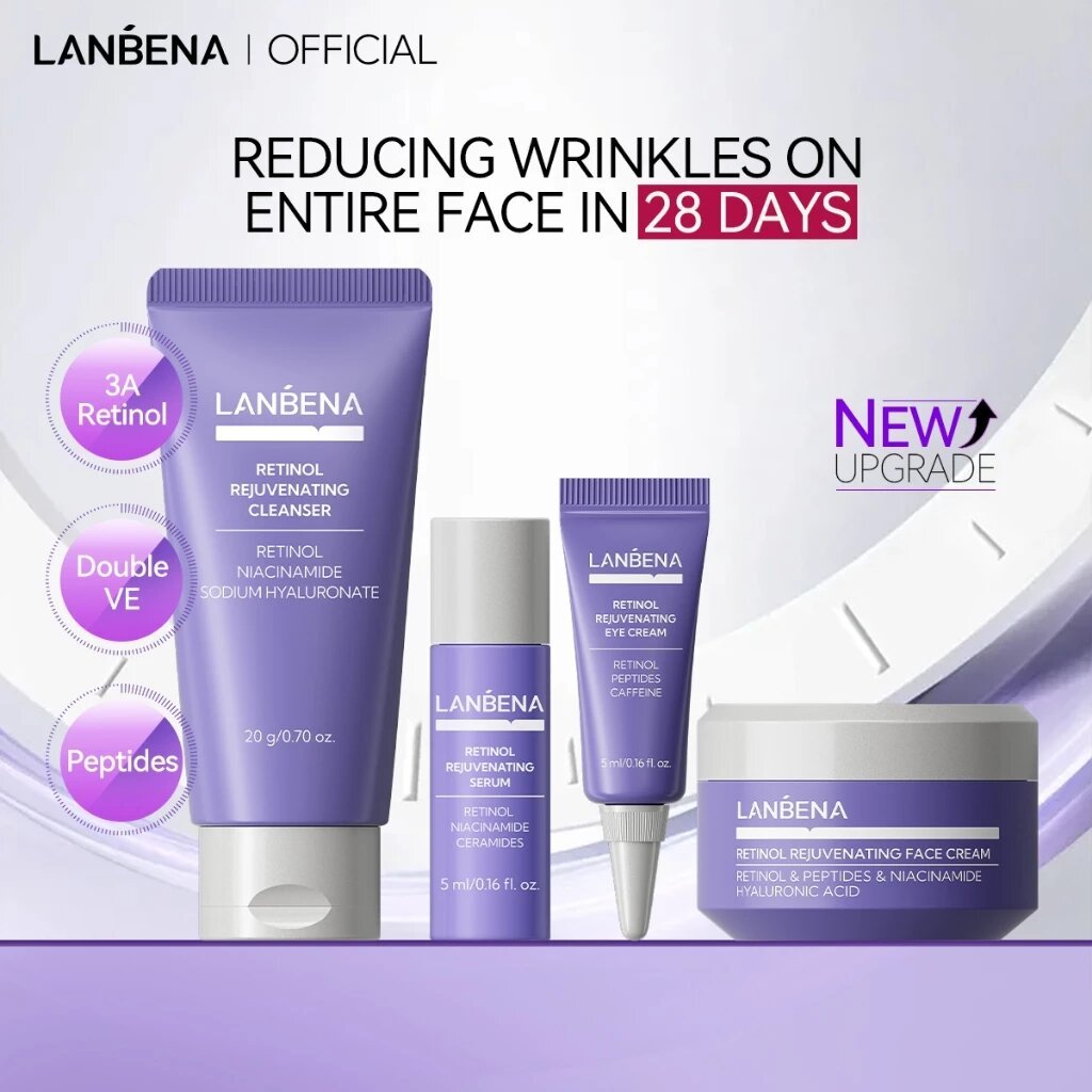 LANBENA Retinol Rejuvenating Facial Skincare Kit Peptide Amino Acid Facial Cleanser Serum Cream & Firming Cream Skin Travel Size
