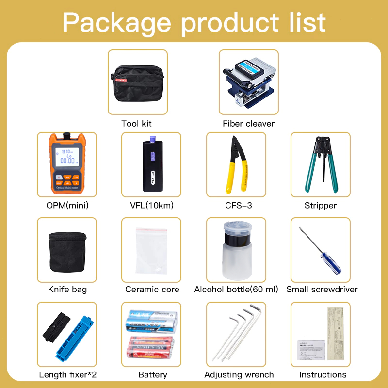 FTTH fiber optic tool kit FC-6S Fiber Cleaver Optical Power Meter 10KM Visual Fault Locator CFS-3