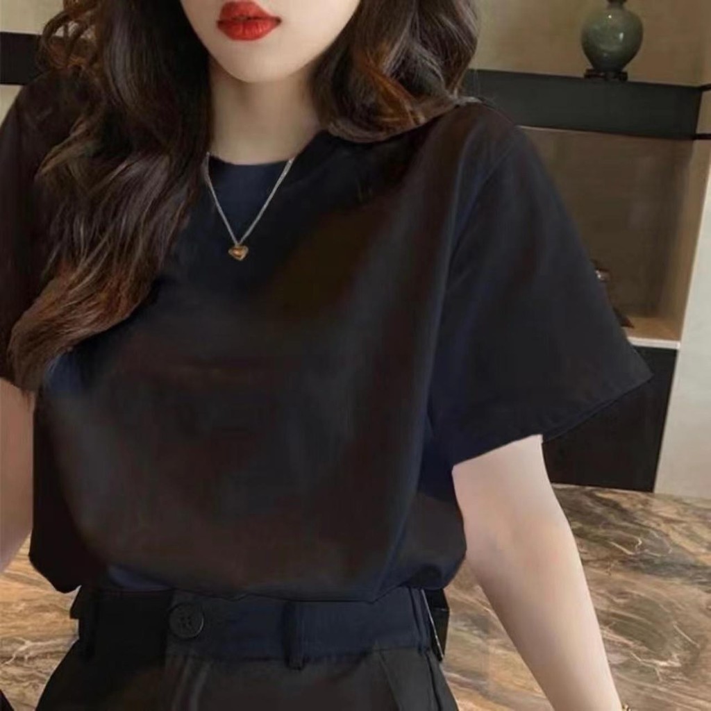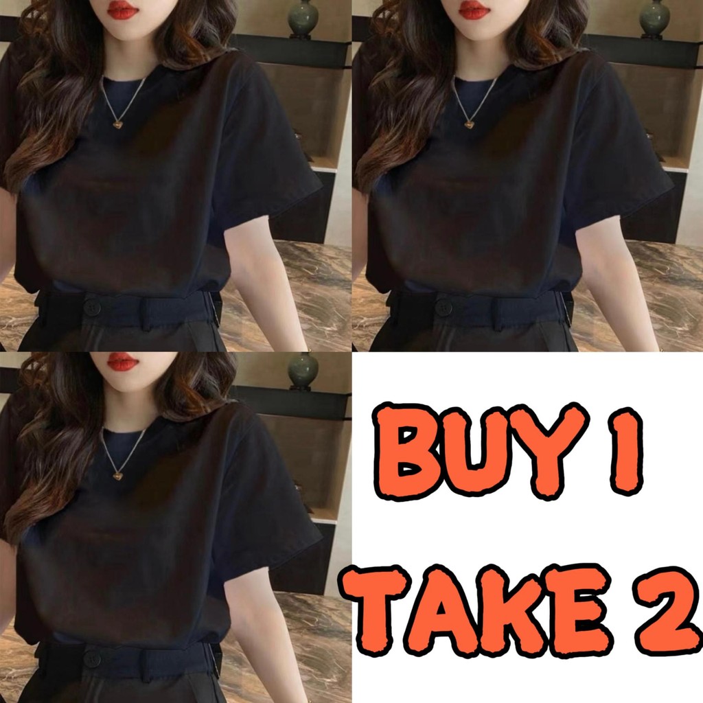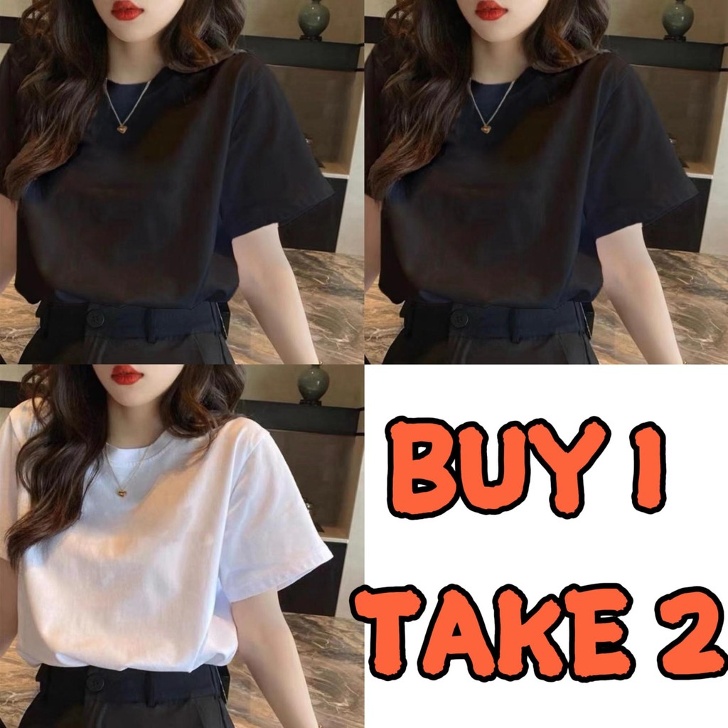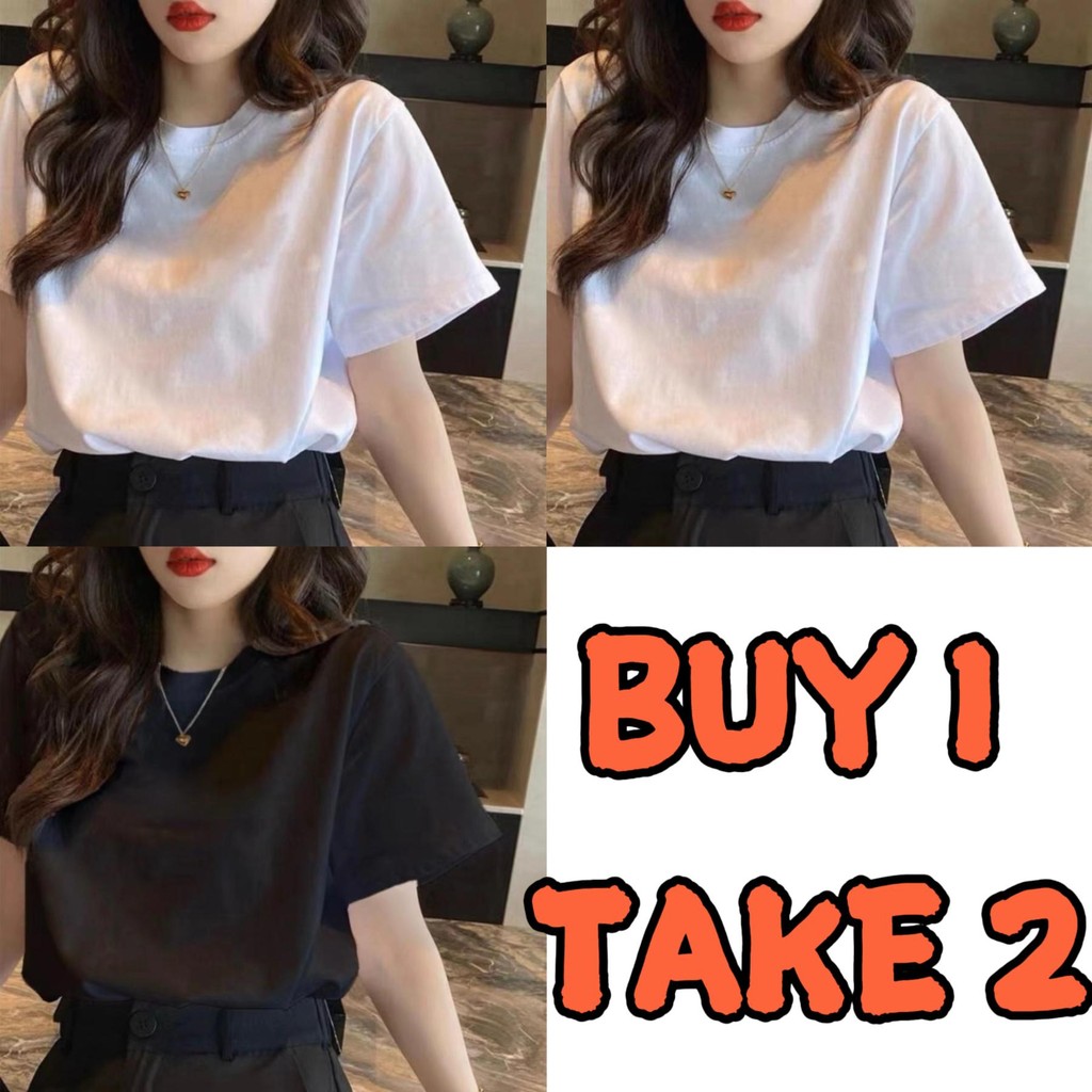 [BUY1 TAKE2] Women's tops round neck short sleeves summer black and white solid color cotton unisex