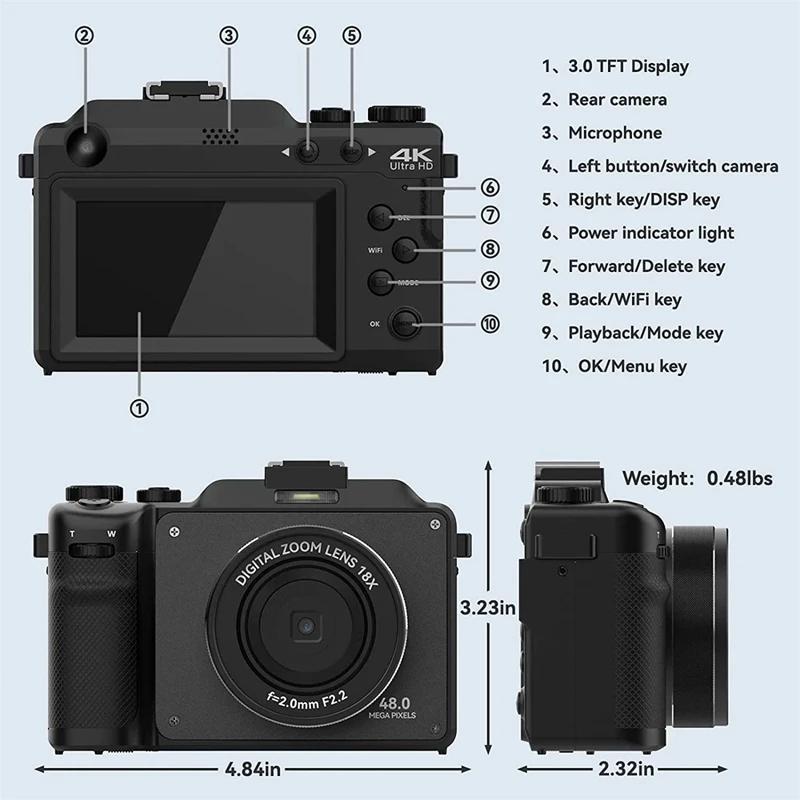 NEW 64MP 18X WIFI Digital Camera Professional Mirrorless Camera 4K Auto Focus for Vlog Travel Video Student