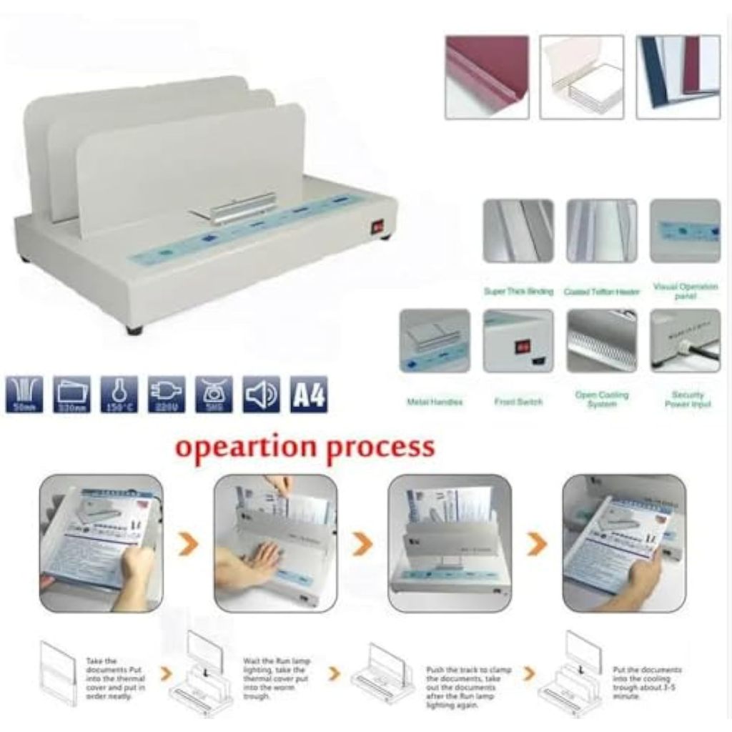 220V 50mm Hot Melt Binding Machine Electric A3/A4/A5/A6 Thermal Heat Binder 50mm Binding Thickness 3 Gears Temperature Control Automatic Clamping For Document
