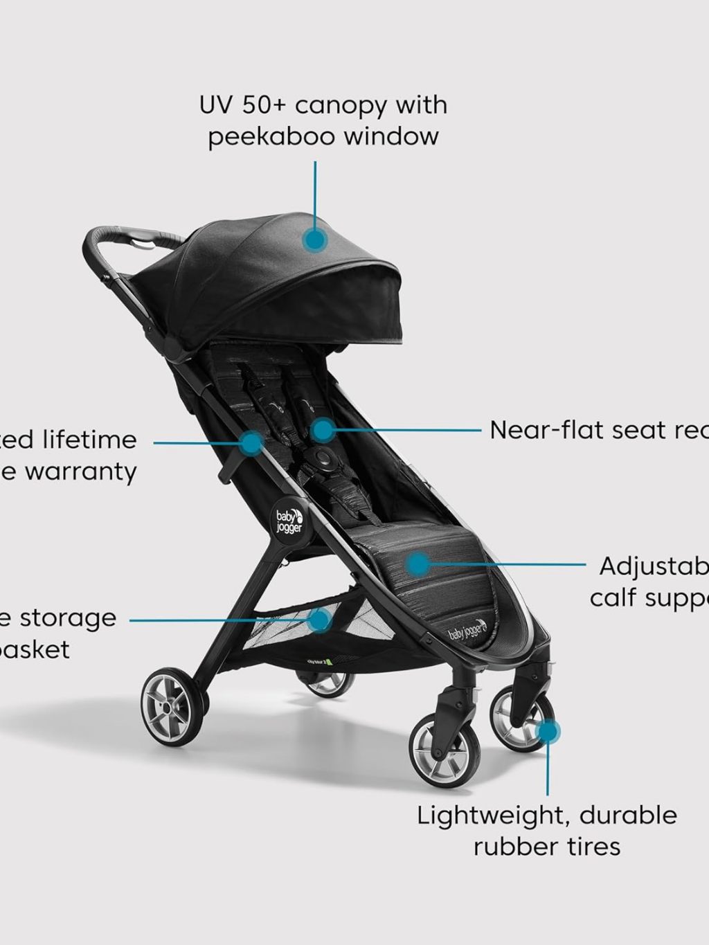 Baby Jogger City Tour 2 Ultra-Compact Travel Stroller, Jet, Lightweight, Foldable, Traveling
