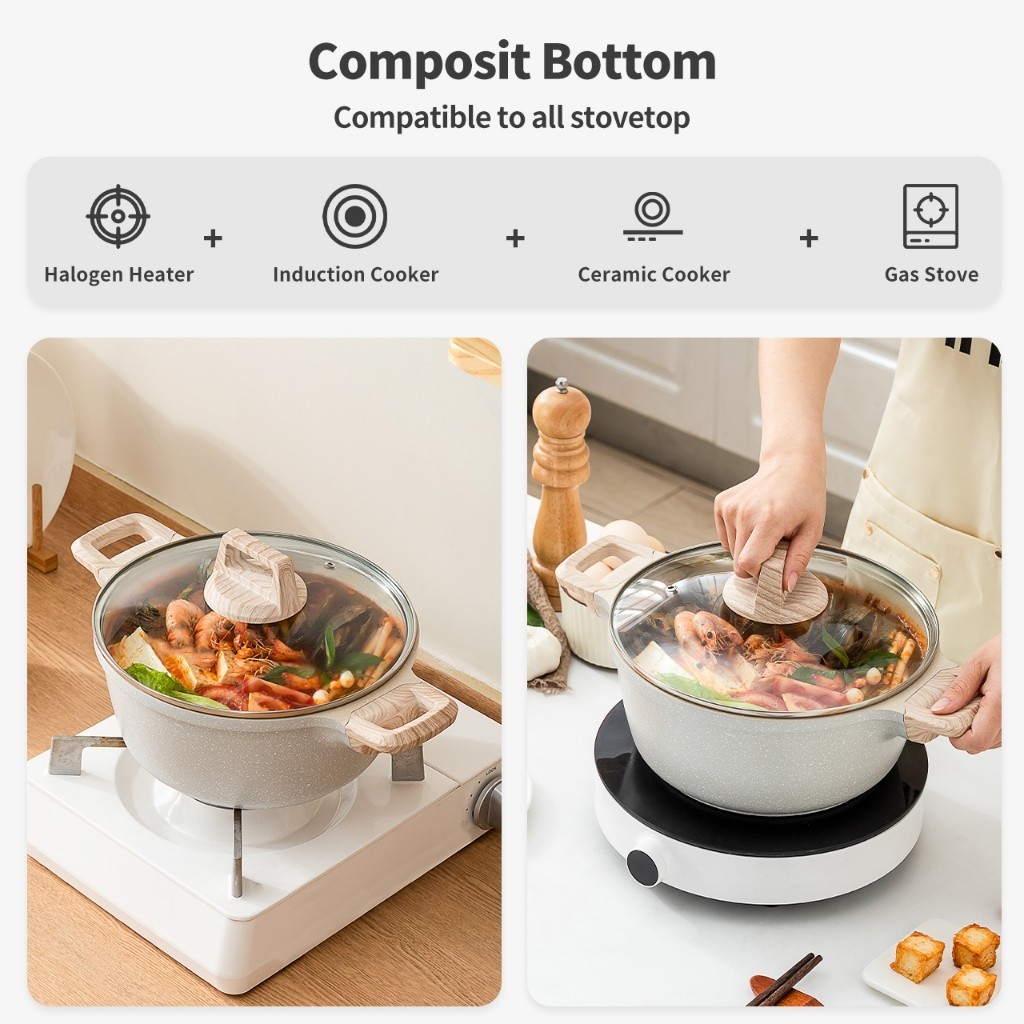 BOREINE (24/28CM) Non stick pan Soup pot Used for induction cookers, electric ceramic stoves, and gas stoves Saucepan Entry Level 耐热415℃