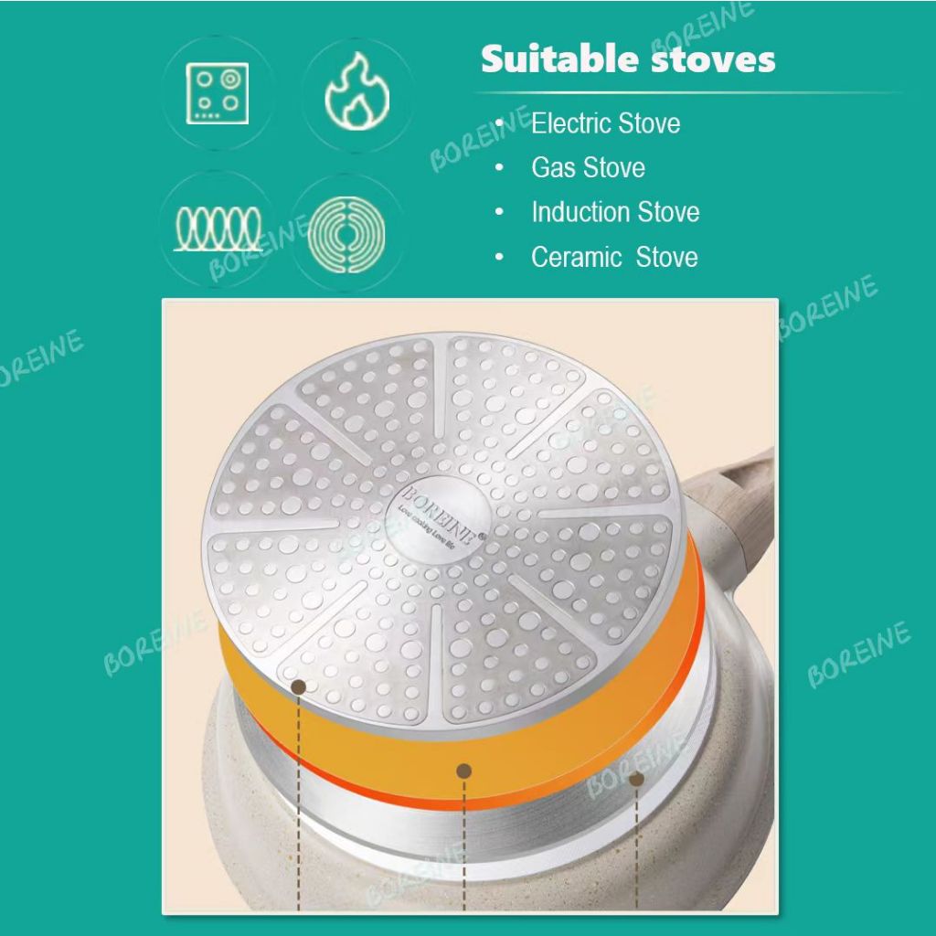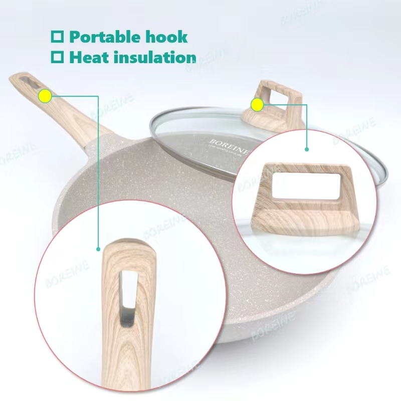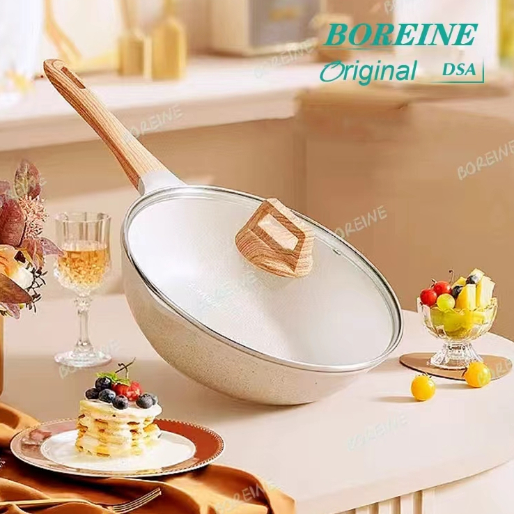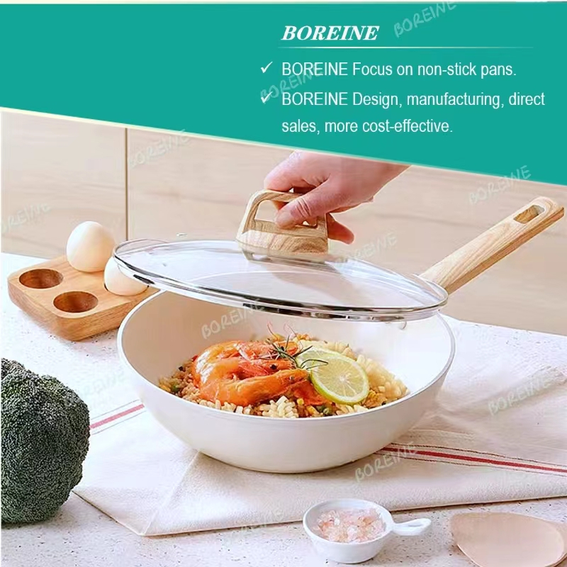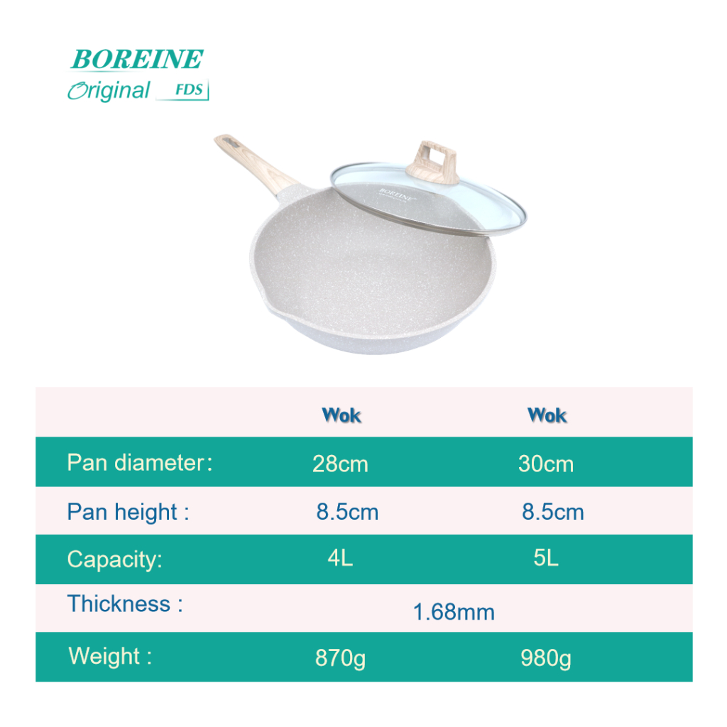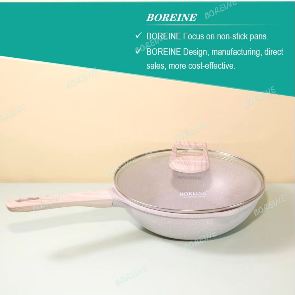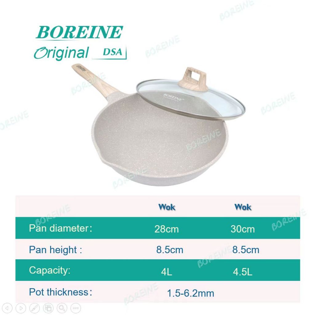 BOREINE Non Stick Stir-fry Deep Fry Wok 28/30cm PFOA Free Non-Stick Coating Cookware Suitable Induction