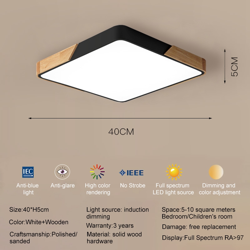 KASIDA Nordic LED Ceiling Light Minimalist Wood Flush Mount Ceiling Light Fixture Tri Color Dimmable Ultra-thin Ceiling Lights For Living Room Bedroom