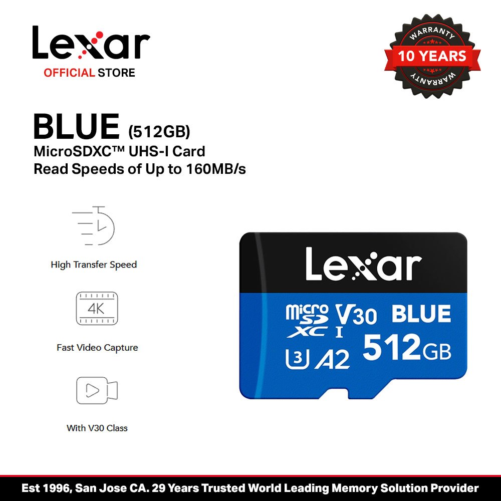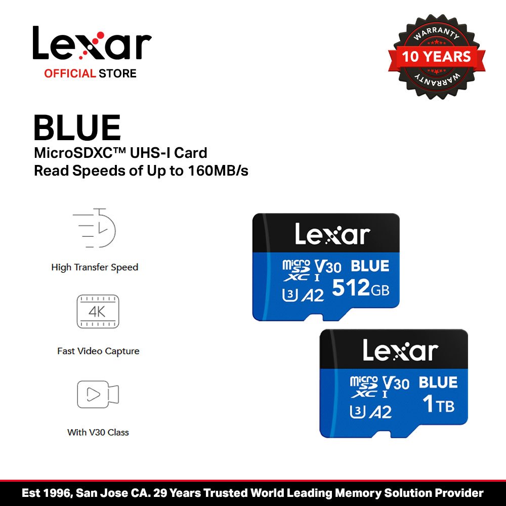 Lexar Blue 512GB/1TB microSDXC A2 V30 UHS-I Card MicroSD Card