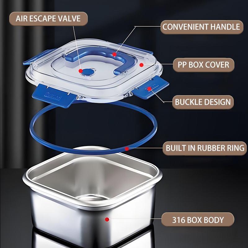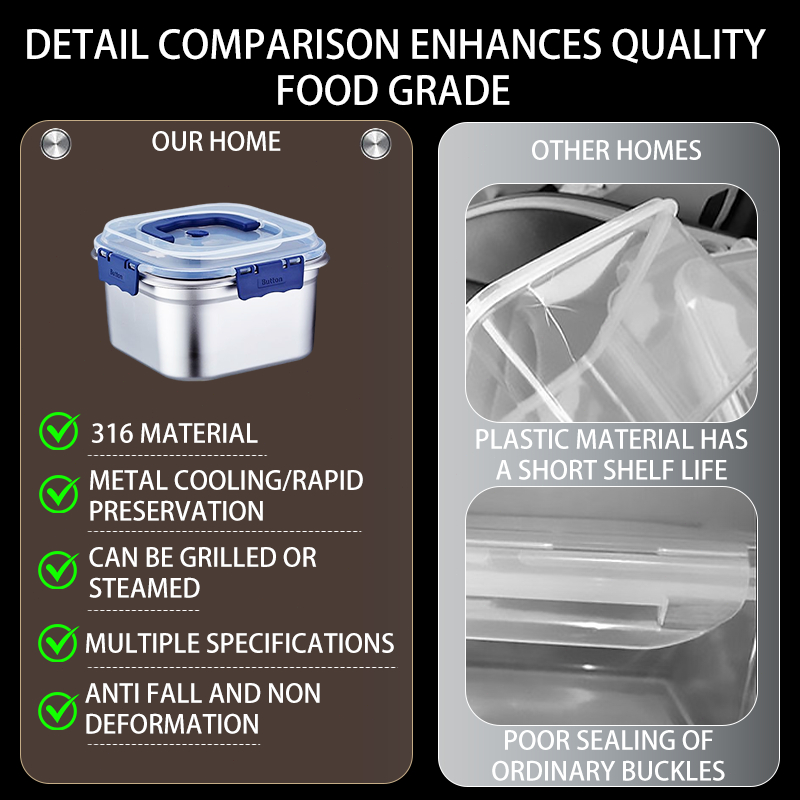 316 Stainless Steel Food container Insulated Box Sealed Box Refrigerator FreshKeeping Box With Lid