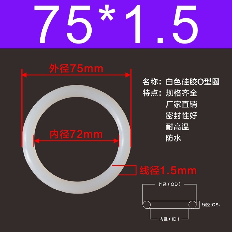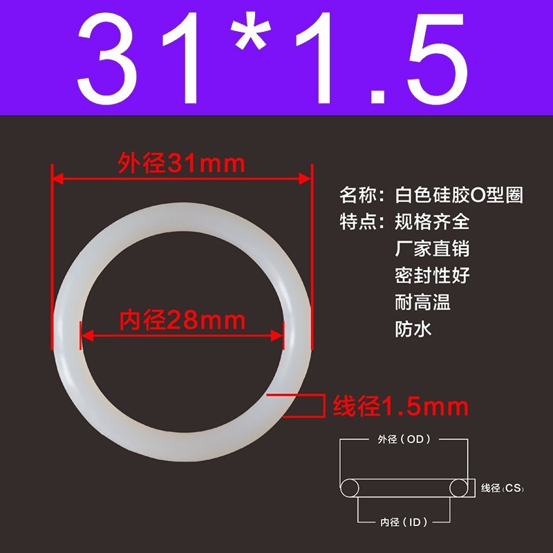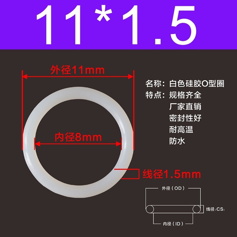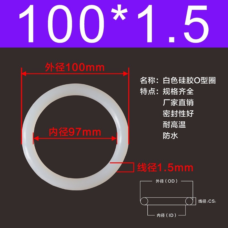 White silicone O-ring CS1.5mm * OD4-100mm sealing ring waterproof ring rubber ring silicone ring high temperature resistant O-ring seal
