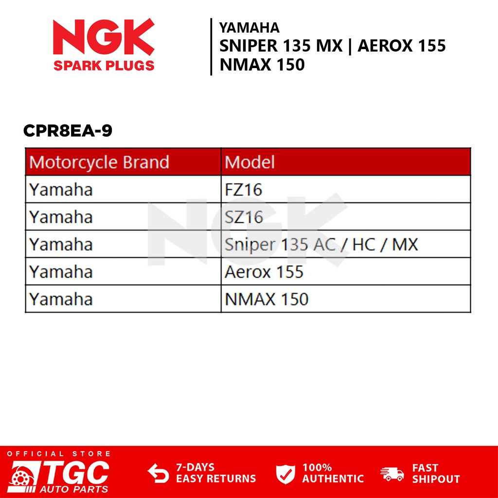 NGK Spark Plug Motorcycle Standard Nickel Yamaha Sniper 135 MX / Aerox 155 / NMAX 150 CPR8EA-9 1pc