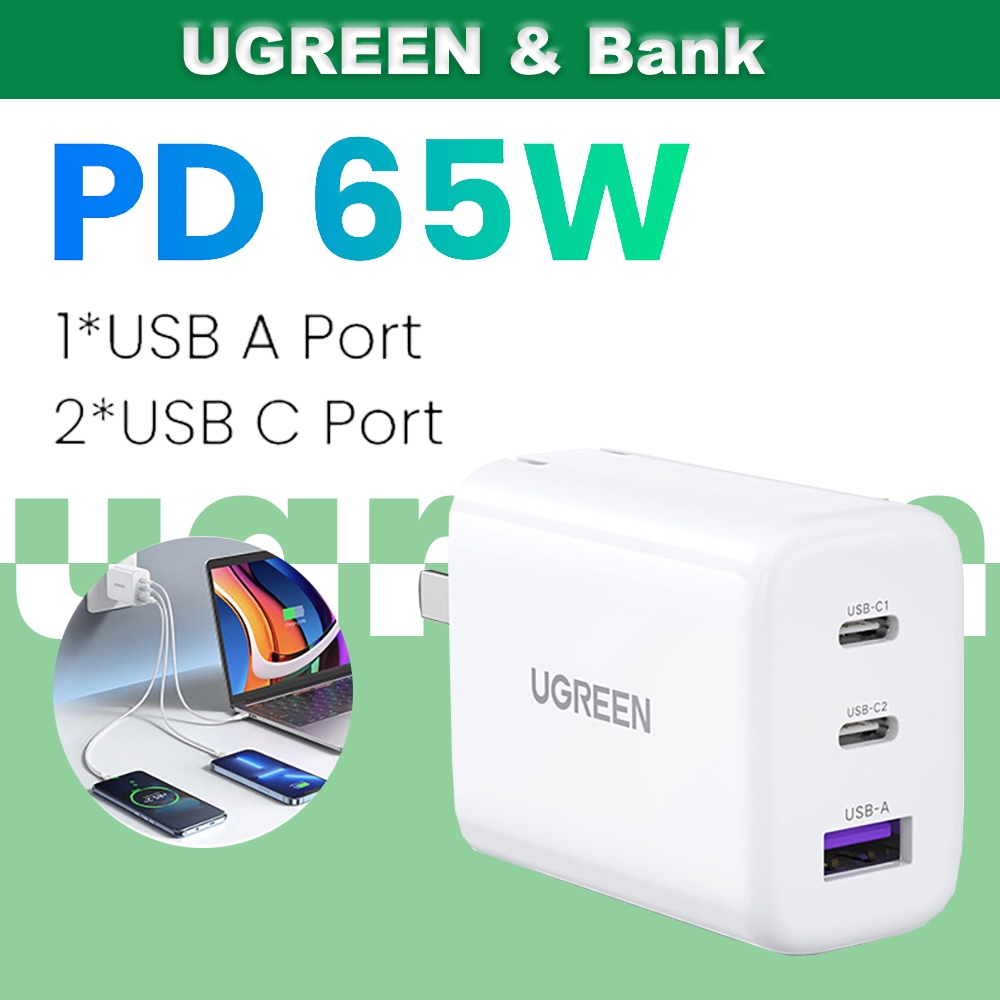 UGREEN 65W USB C Charger 3 Ports Fast Charger Foldable Wall Charger Travel Charger