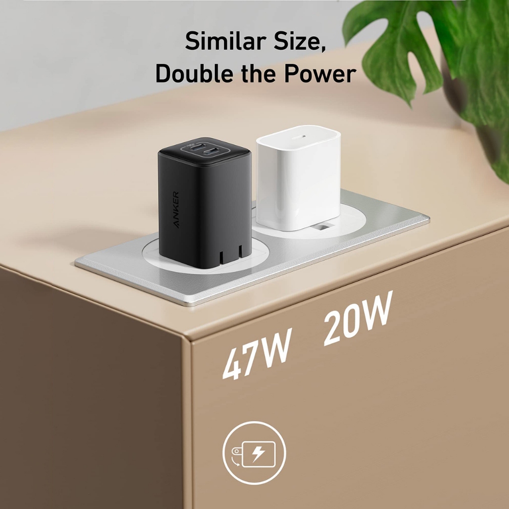 Anker 523 Nano 47W 2 USB-C Port charger With ActiveShield 2.0 PIQ 3.0 Foldable PPS Fast Charger