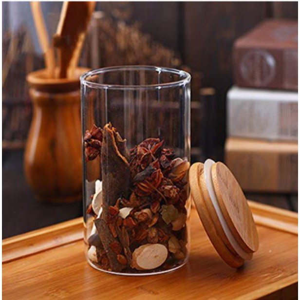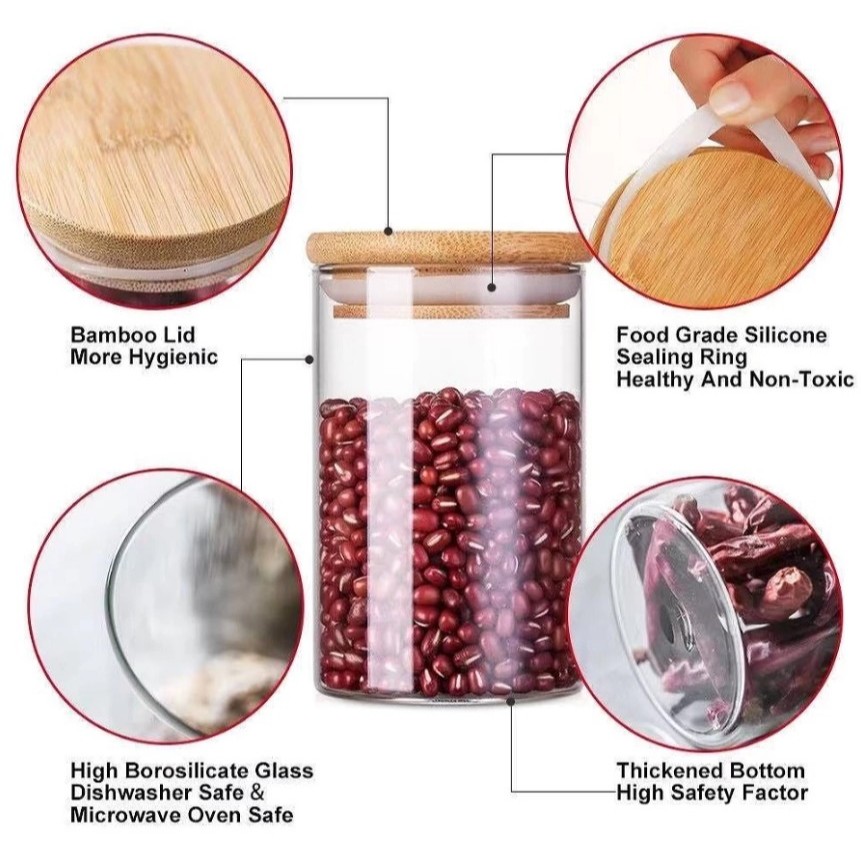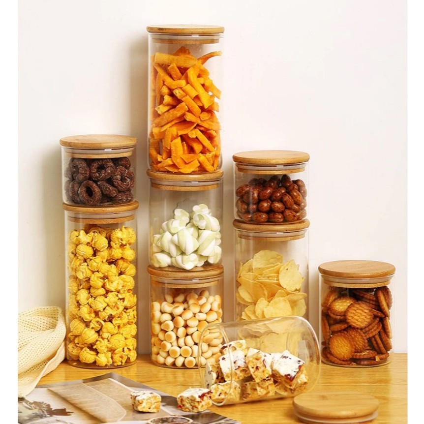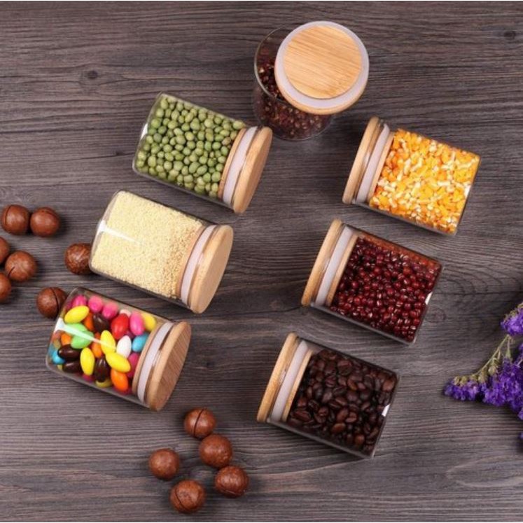 MP Bamboo Lid Cover Food Storage Glass jar Container Air Tight Canister Food Storage Cookie Garapon