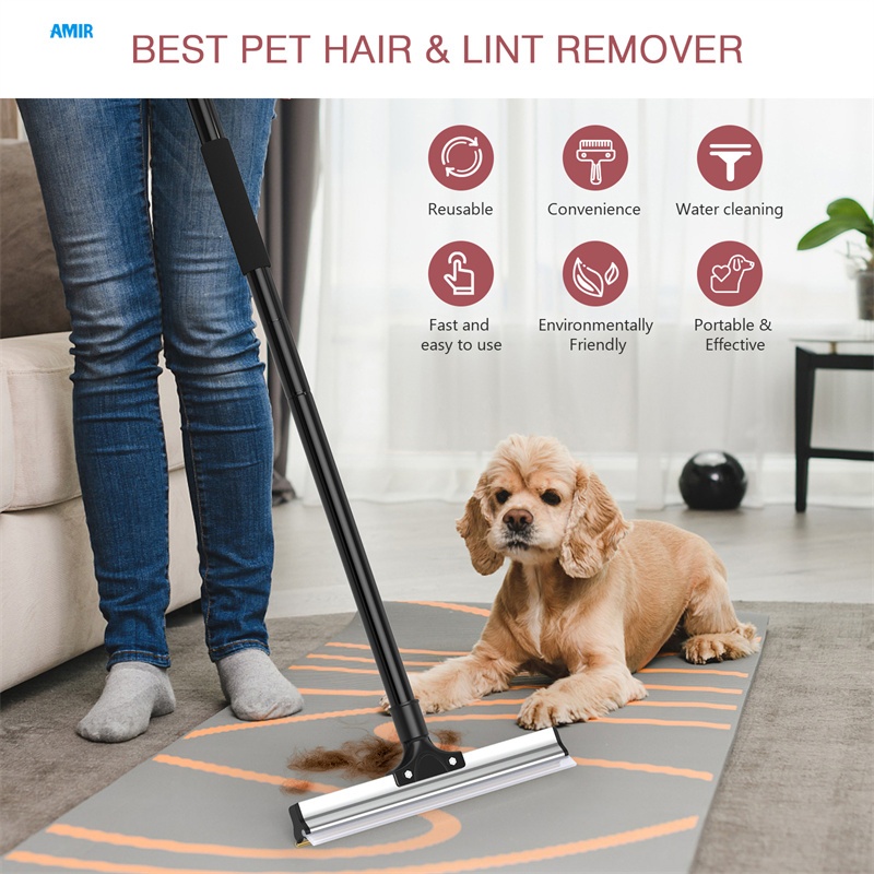 AMIR Pet Hair Remover for Carpet Adjustable Long Handle Carpet Rake for Dog & Cat Hair Removal Reusable Fur Brush & Lint Remover